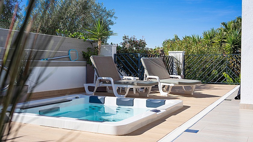 Das große, ummauerte Grundstück ist wunderschön angelegt und verfügt über eine stilvolle Terrasse in grauer Holzoptik, einen 8 x 4 m großen Swimmingpool und einen eingebauten Whirlpool. Die Bepflanzung aus ausgewachsenen Bäumen und Sträuchern ist harmonisch in die Gesamtgestaltung integriert. Sie sorgen für einen Hauch von Grün und vermitteln ein Gefühl von Frieden und Ruhe. Ihre eigene kleine Oase im Herzen von Quesada.