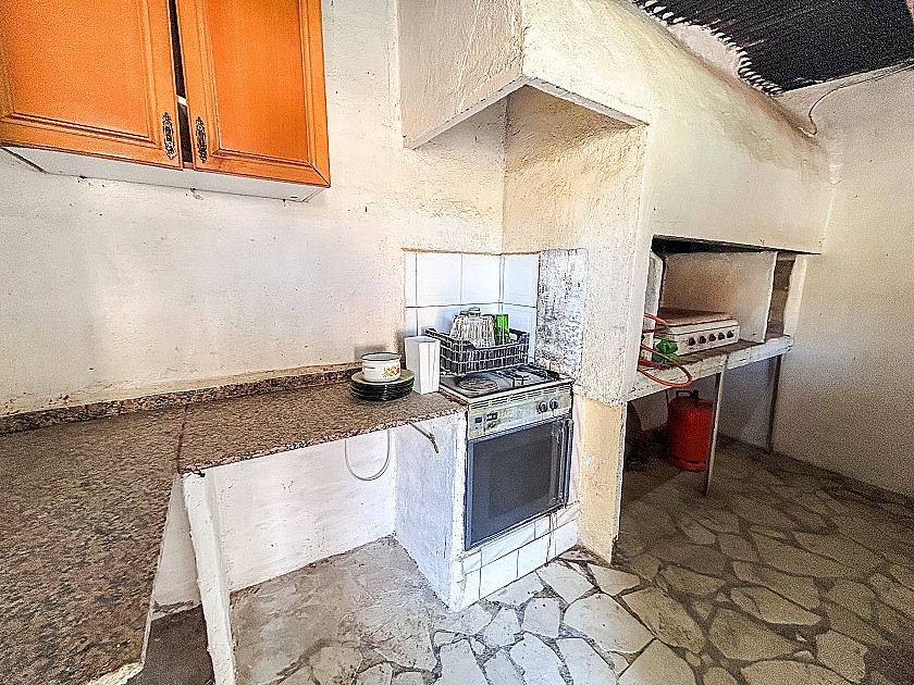 Das Haus bietet vier Schlafzimmer, davon zwei im Höhlenbereich, die das ganze Jahr über eine konstante Temperatur und ein angenehmes Wohnklima ermöglichen, sowie zwei weitere im konventionellen Teil. Das Wohn- und Küchenbereich ist offen gestaltet und vermittelt eine warme Atmosphäre; es ist mit einem Kamin und Klimaanlage ausgestattet. Zudem gibt es ein vollständig ausgestattetes Badezimmer. Die Immobilie befindet sich in gutem Allgemeinzustand und benötigt lediglich eine Modernisierung nach Geschmack des neuen Eigentümers.