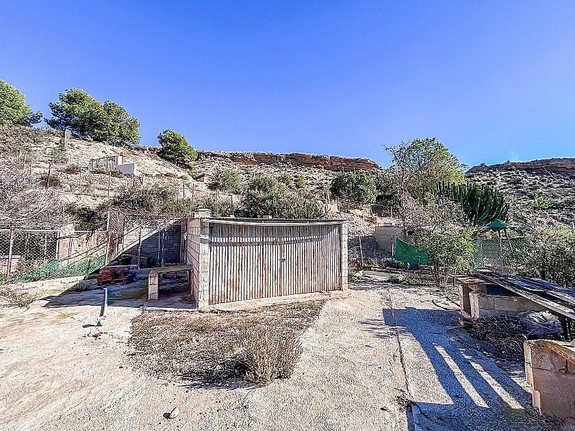 Zum Verkauf steht ein außergewöhnliches Anwesen in Crevillente: ein Landhaus, das zur Hälfte als Höhlenhaus und zur Hälfte als traditionelle Konstruktion ausgeführt ist, erbaut im Jahr 1980 und gelegen auf einem vollständig eingezäunten Grundstück von 3.500 m² inmitten einer privilegierten Naturlandschaft. Die Immobilie verfügt über insgesamt 191 m² Wohnfläche und kombiniert in Fels eingelassene Räume mit klassischen Wohnbereichen, was ein einzigartiges Wohnambiente mit hervorragender natürlicher Isolierung schafft.