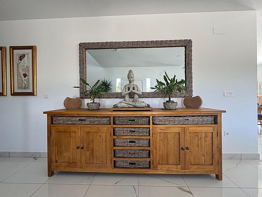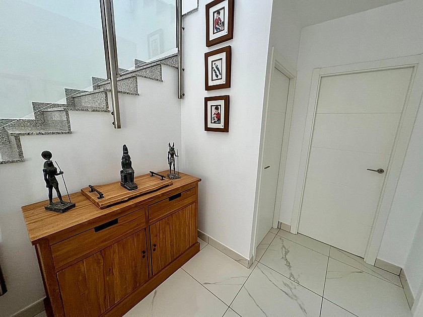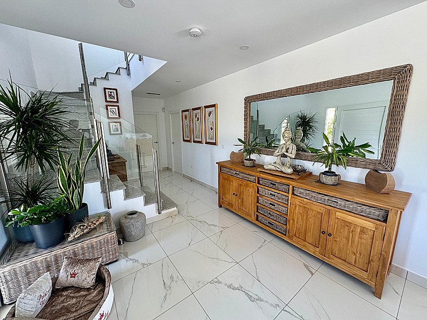 Wenn Sie das Anwesen durch die Eingangstür betreten, sehen Sie den wunderschönen Marmorfliesenboden, der sich durch das ganze Haus zieht und das Gefühl von Stil und Dekadenz verstärkt.