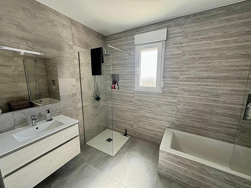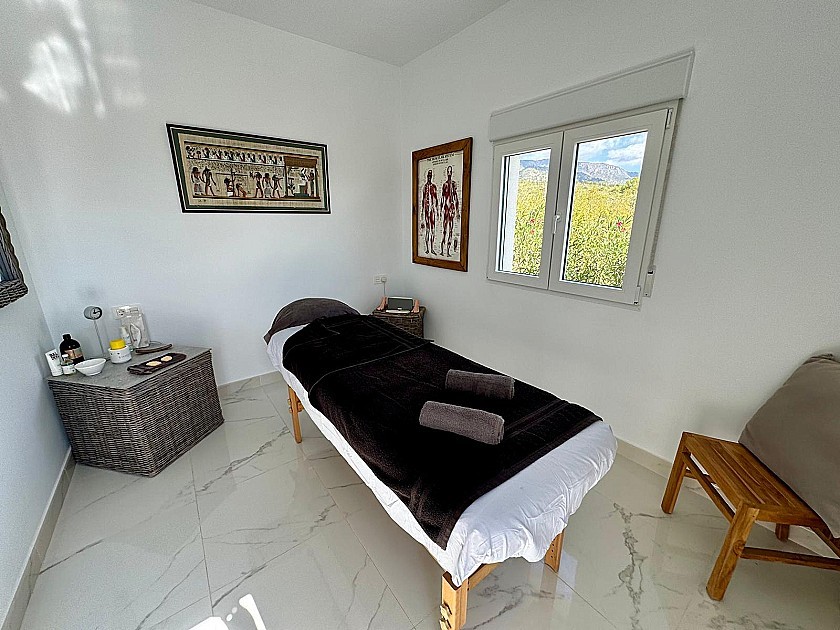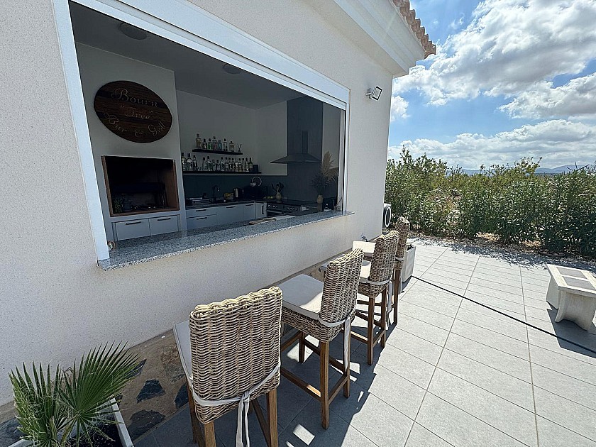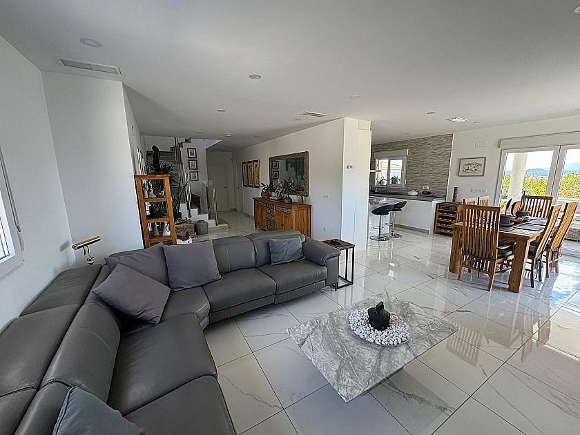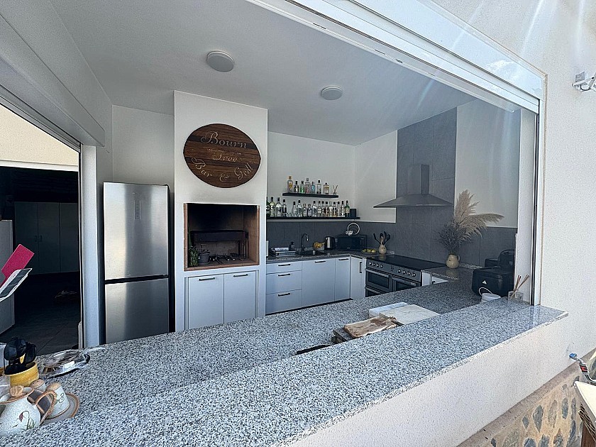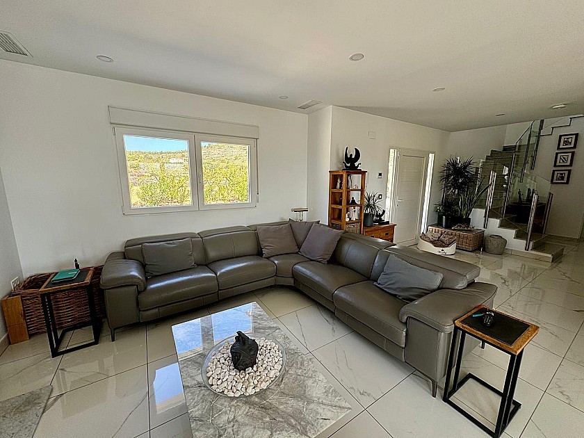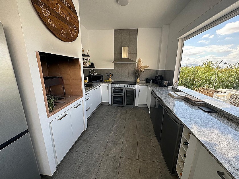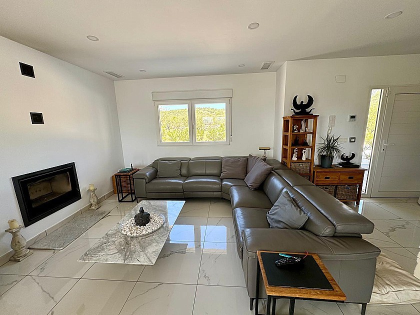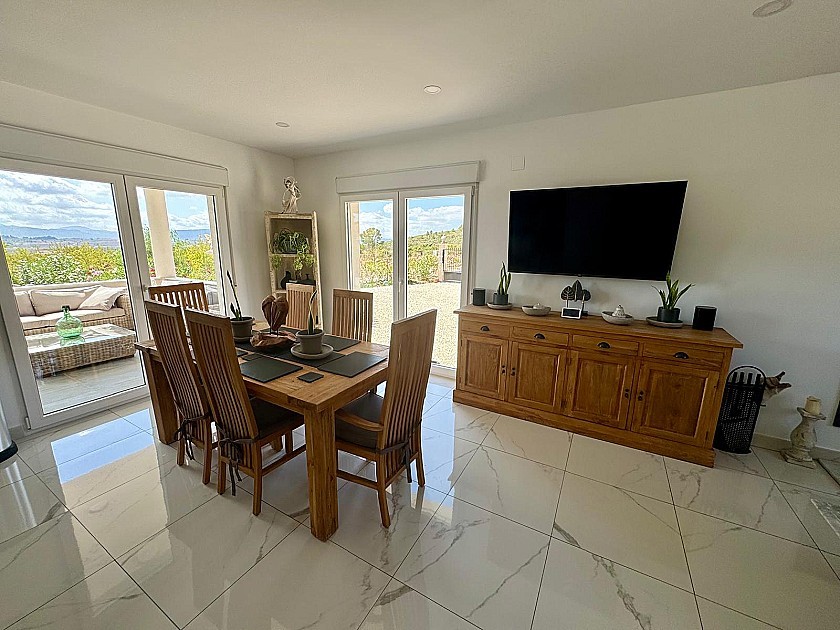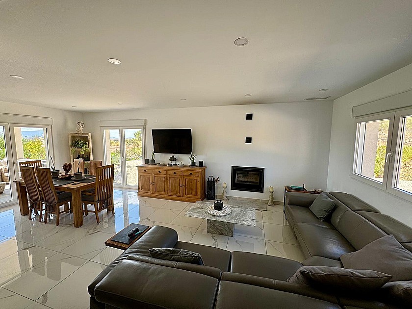 Der Wohn-/Essbereich ist hell und luftig und verfügt über viele Fenster, die das natürliche Licht hereinströmen lassen. Es gibt einen eingebauten Holzofen, der perfekt für die kühleren Winterabende ist. Das Haus verfügt über eine zentrale Klimaanlage und Heizung.