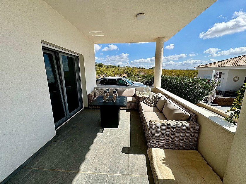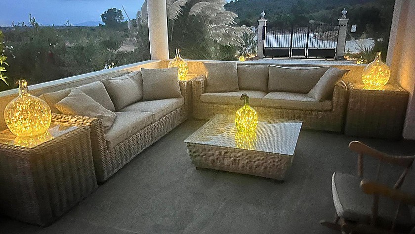 Wenn Sie die Stufen vor dem Anwesen hinaufsteigen, gelangen Sie zu einer wunderbaren Terrasse, die Ihnen den dringend benötigten Schatten vor der Sommersonne spendet. Dieser Bereich eignet sich perfekt für Mahlzeiten im Freien.