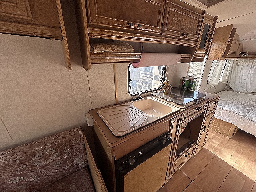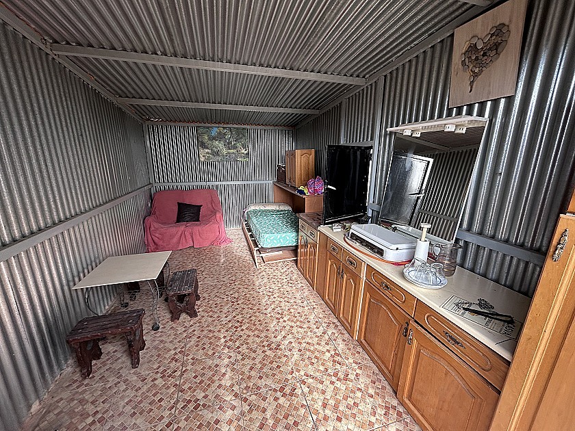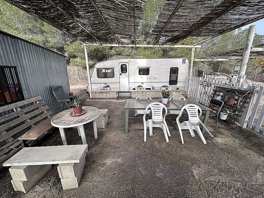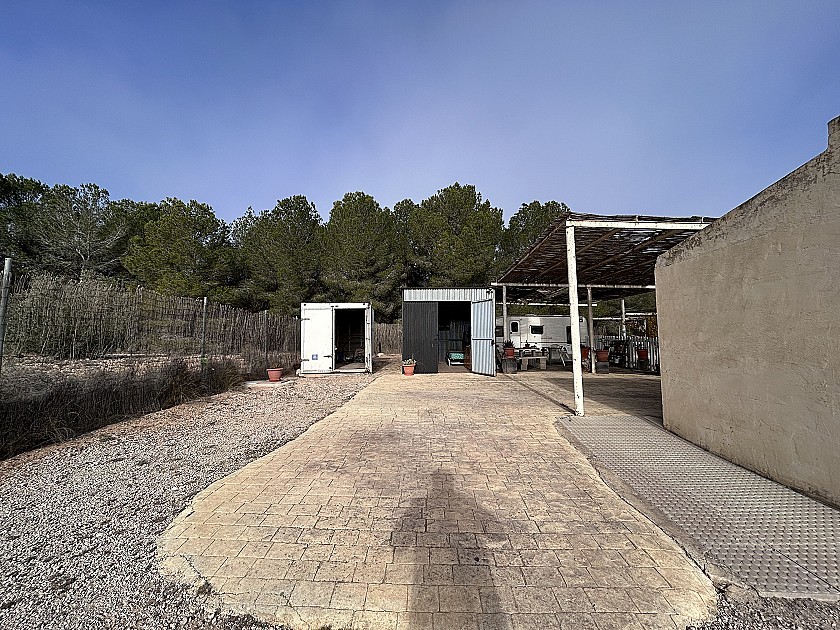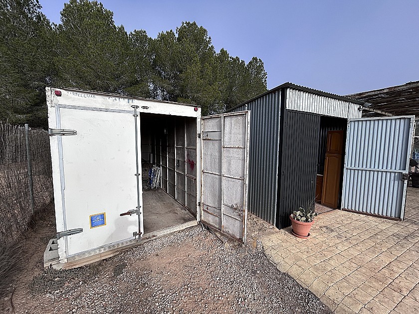 Lagerräume und einen Wohnwagen, die als Lagerfläche oder sogar als Wohnraum genutzt werden können.