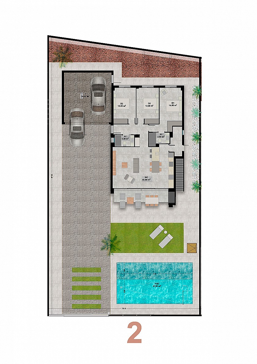 Eine ausgewählte Anlage im Signature-Stil – NUR 3 moderne Villen auf einer Ebene – alle mit großzügigen Grundstücksgrößen, Doppelgarage, privatem Swimmingpool und Dachsolarium.