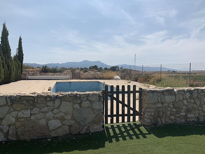 Das Grundstück ist 4.179m² groß und muss noch landschaftlich gestaltet werden. Es gibt einen großen Swimmingpool und eine Garage/Werkstatt.
