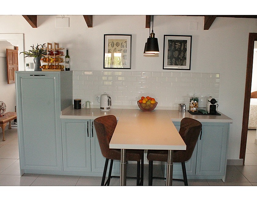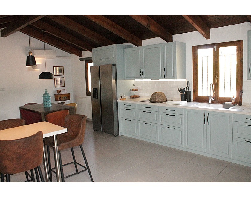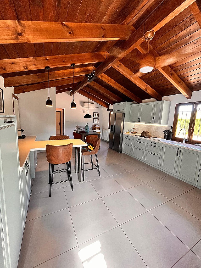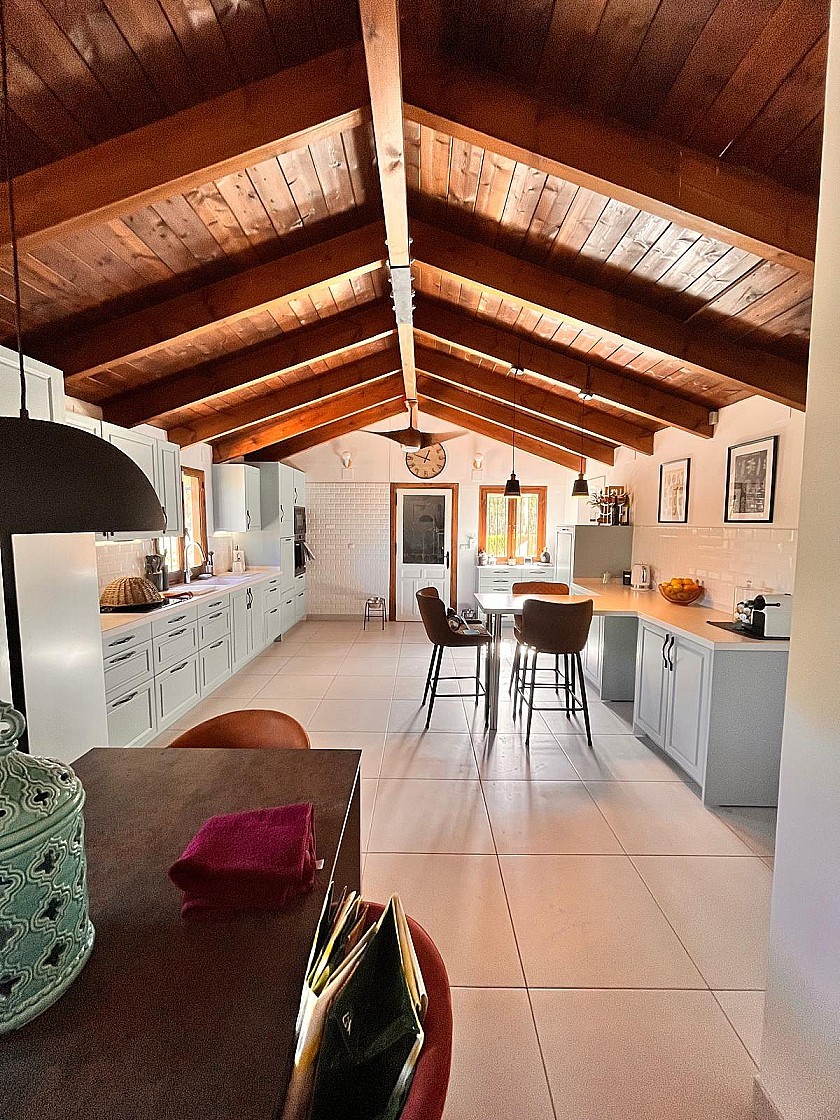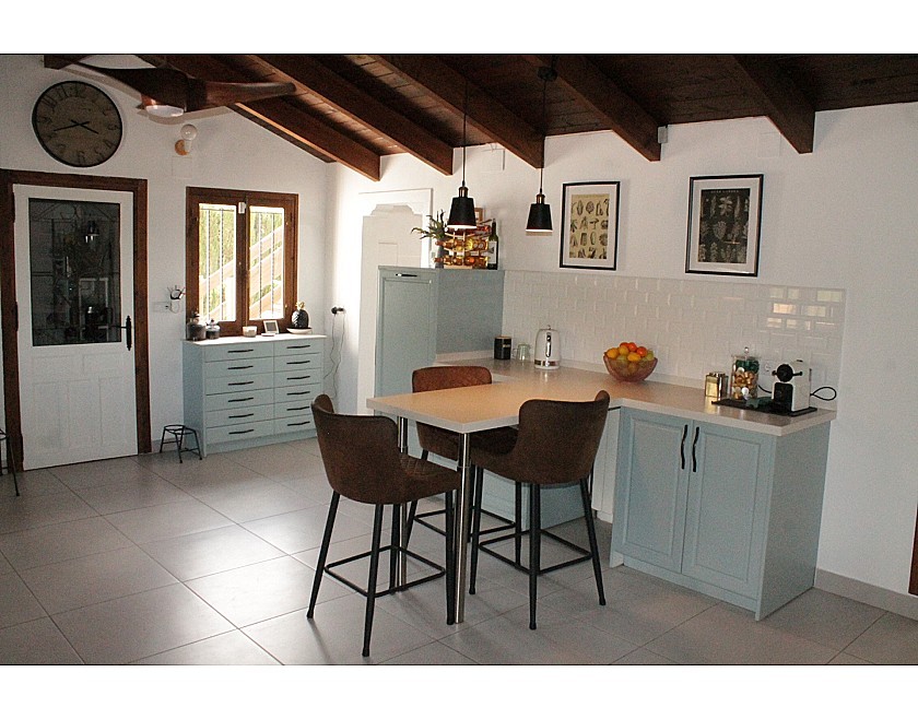 Wenn Sie das Haus betreten, werden Sie von einem großen Wohnzimmer mit Kamin und traditionellen spanischen Decken begrüßt, das in einen der beeindruckendsten Räume übergeht, die ich je gesehen habe: die Essküche. Schauen Sie sich einfach unsere Fotos an, um die Schönheit dieses Raumes zu schätzen. Auf der Rückseite und an den Seiten befinden sich die vier Schlafzimmer und drei Bäder, alle von guter Größe, dekoriert und eingerichtet mit einem hohen Standard und einem eleganten Touch.