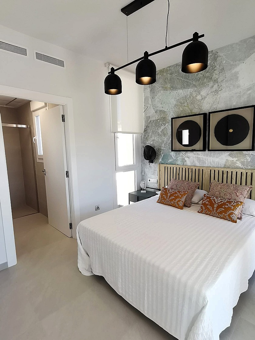 We are delighted to present this stunning, key-ready, brand-new villa located in the exclusive “Las Lagunas” residential complex in Quesada. This is a rare and exceptional opportunity to acquire the perfect home in a prime location, fully furnished by a leading team of interior designers.