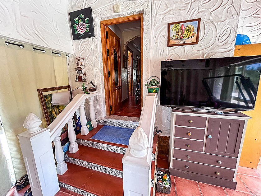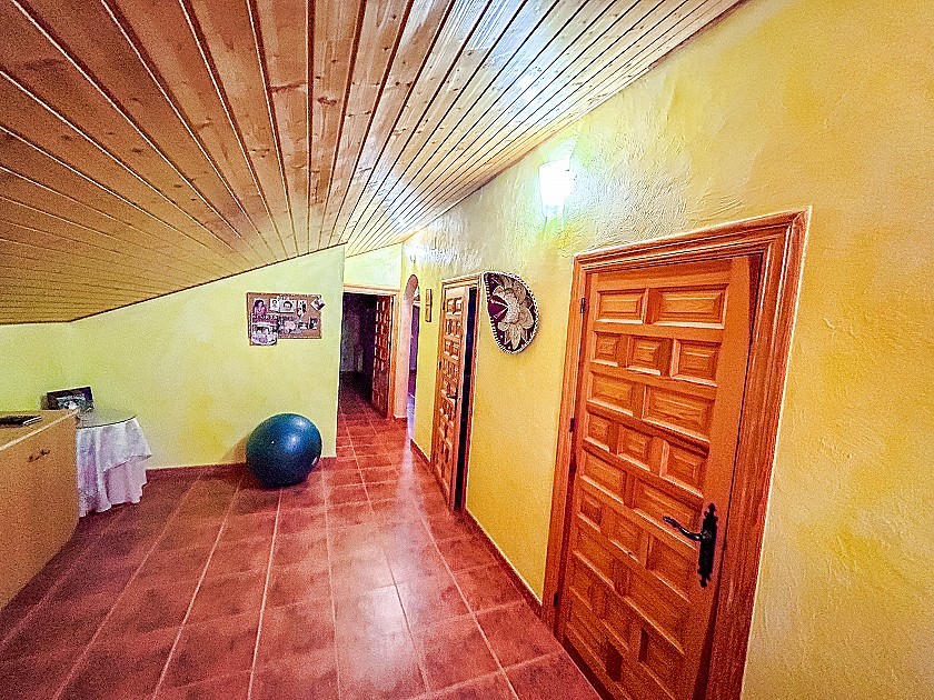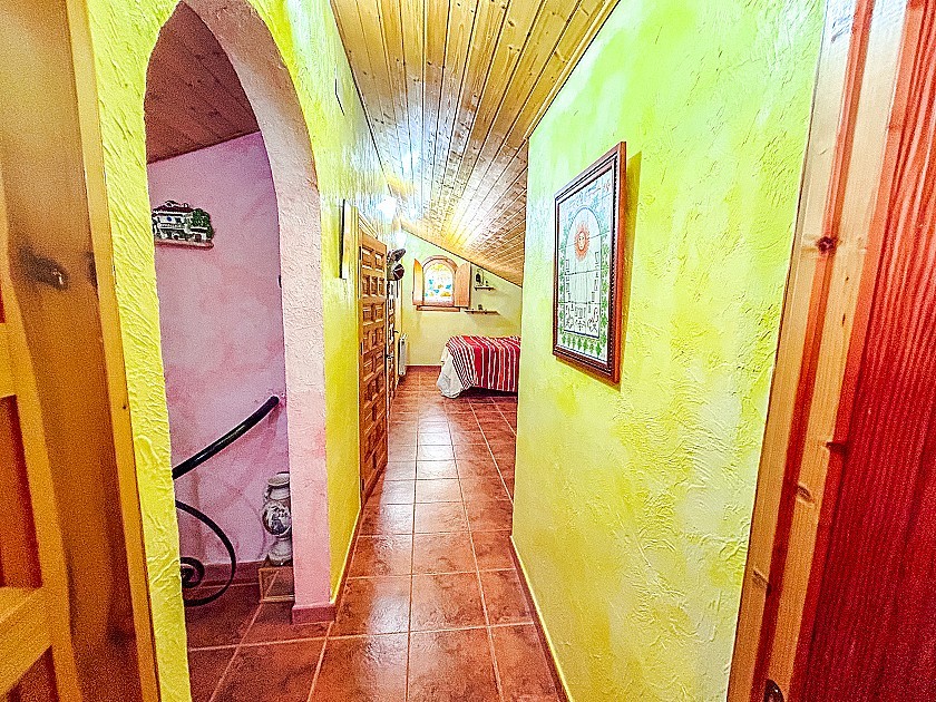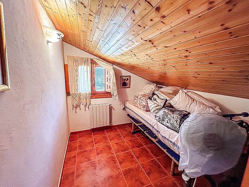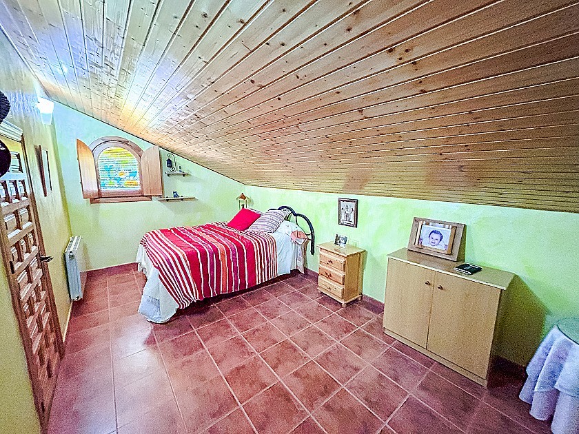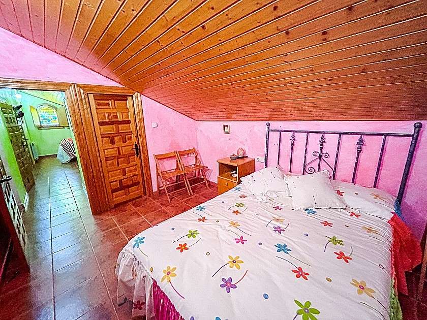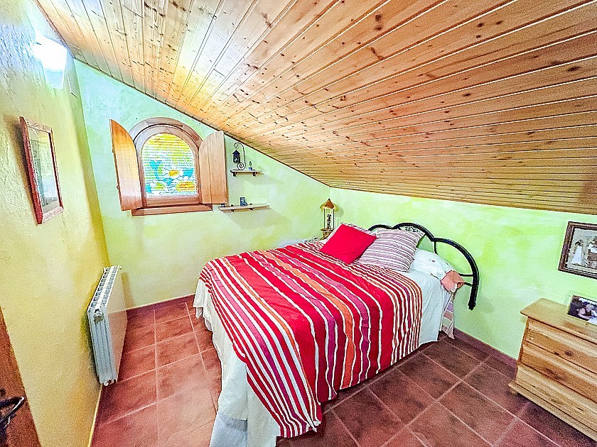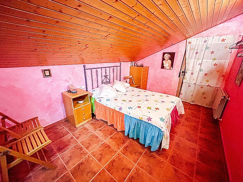 On the ground floor we find 3 bedrooms, 1 full bathroom, and the living room with fireplace and kitchenette. To access the upper floor we go up a spiral staircase located in the living room, on the upper floor we find 2 more bedrooms, 1 full bathroom and a beautiful terrace with incredible views of the mountains.