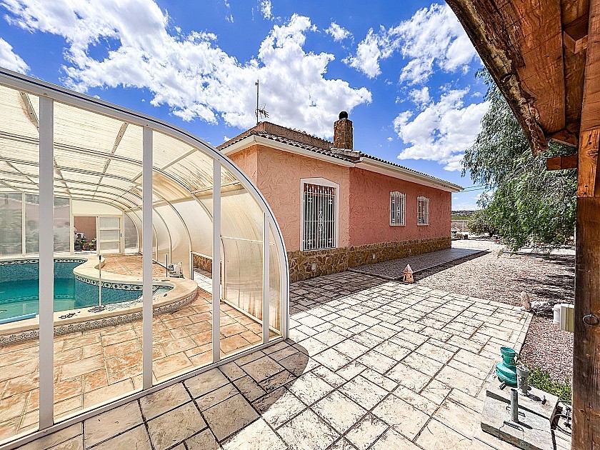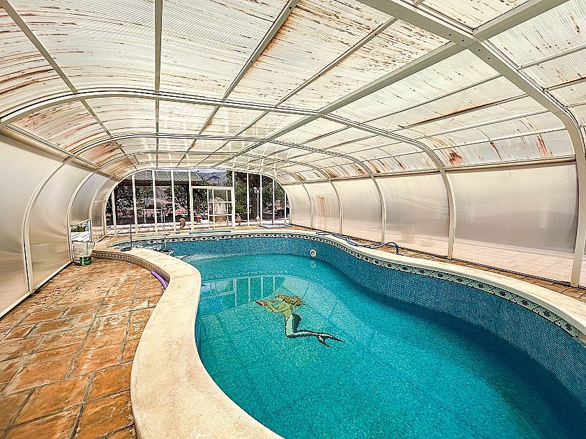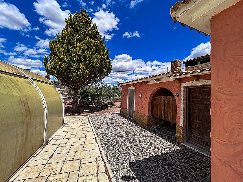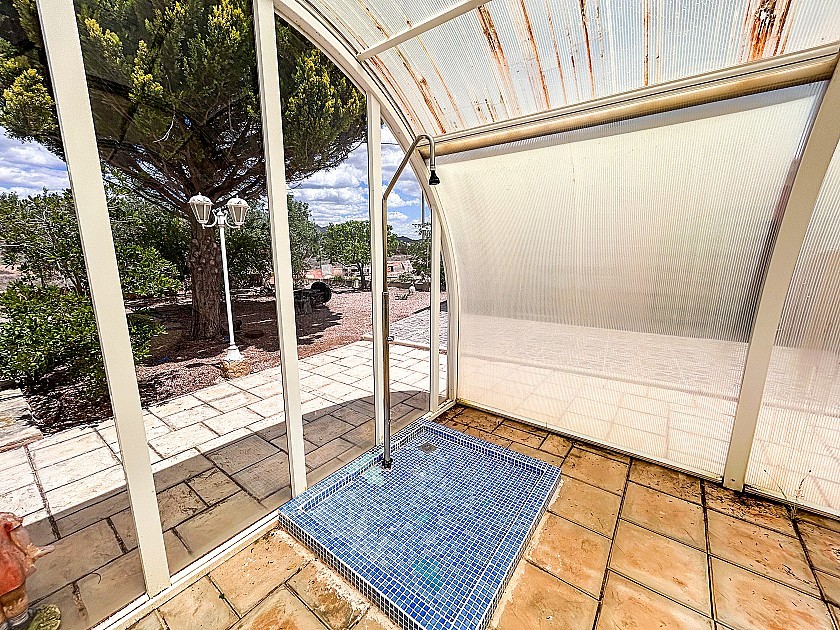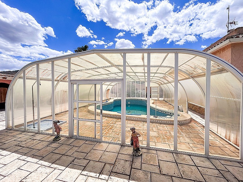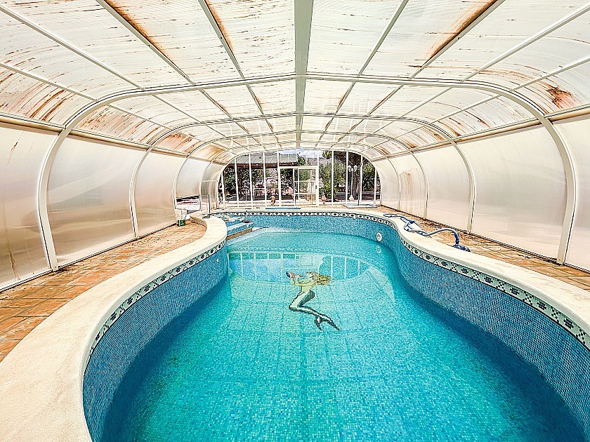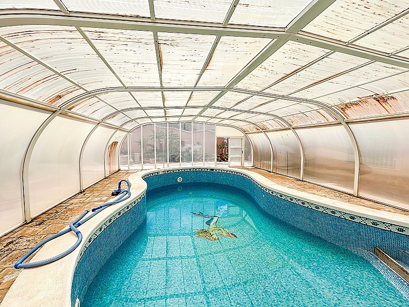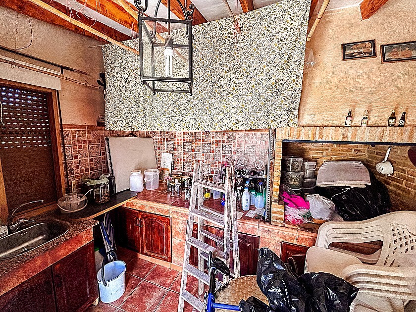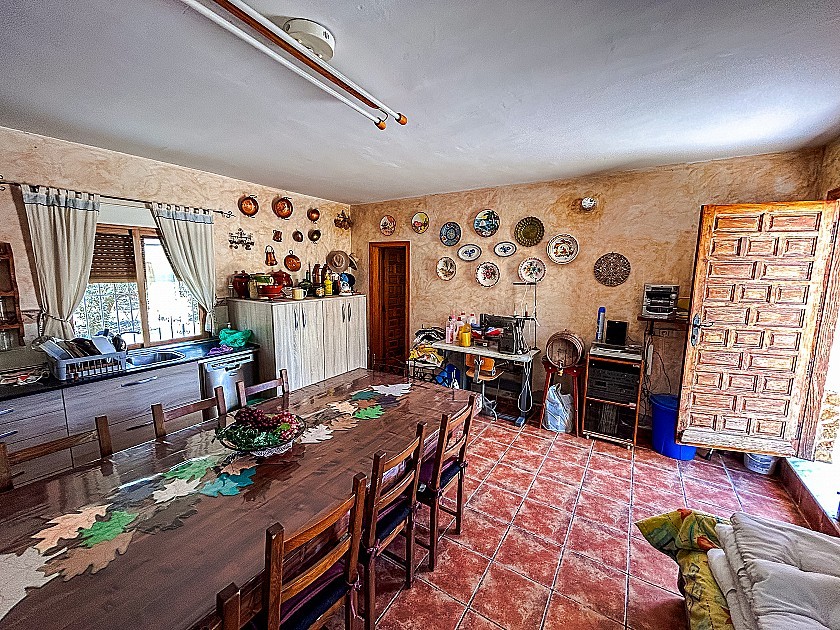 At the back of the house there is a storage room that can be used as a guest house and an area for animals. Also a covered garage with space for 3 cars, a beautiful and large indoor pool perfect for bathing at any time of the year with a shower included. Right next door, a summer kitchen with a bathroom and 2 barbecue areas next to a wood oven, this area can also be used as a guest house.