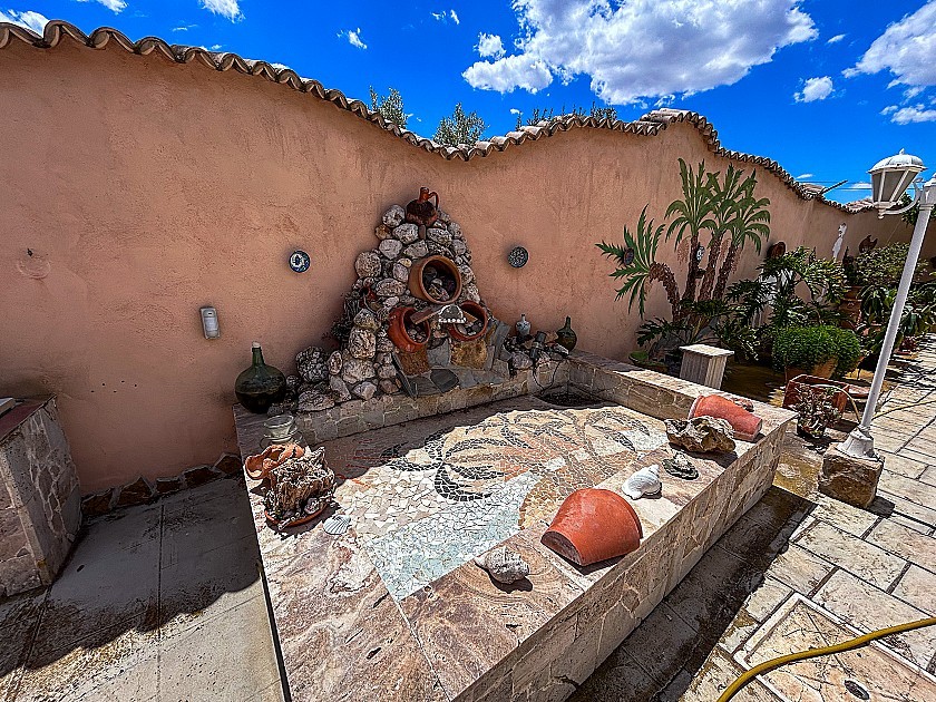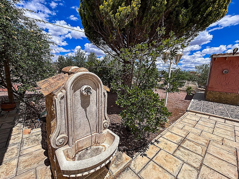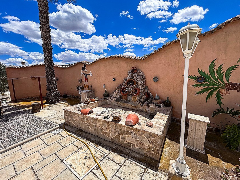 Outside, we find a diversity of trees and fruit plants supplied with drip irrigation water, a cistern with dimensions of 5mx5m, a pond for rainwater and beautiful decorations such as fountains, streetlights, swings... etc.