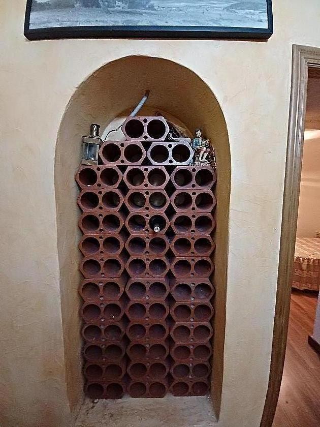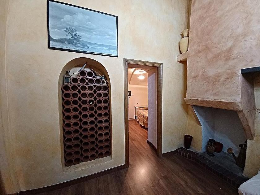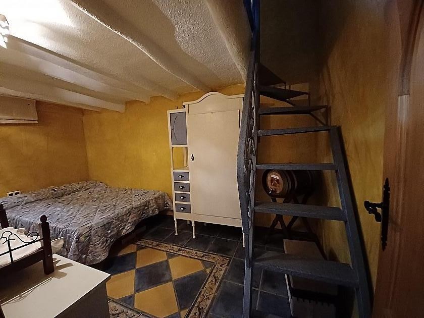 You enter the grounds via double gates to a patio area in front of the house, where there is a shady area for sitting. Entering into the living room that has a wood burning stove and an air conditioning unit ( hot and cold), an archway leads onto a second living room with a high vaulted ceiling with beams, and a bread oven and wine bottle storage set into the wall. Leading on from here is a double bedroom, set in the cave part of the house, this has a constant temperature all year round. To the other side is a second double bedroom and a staircase to the mezzanine floor, either for storage or a third bedroom.