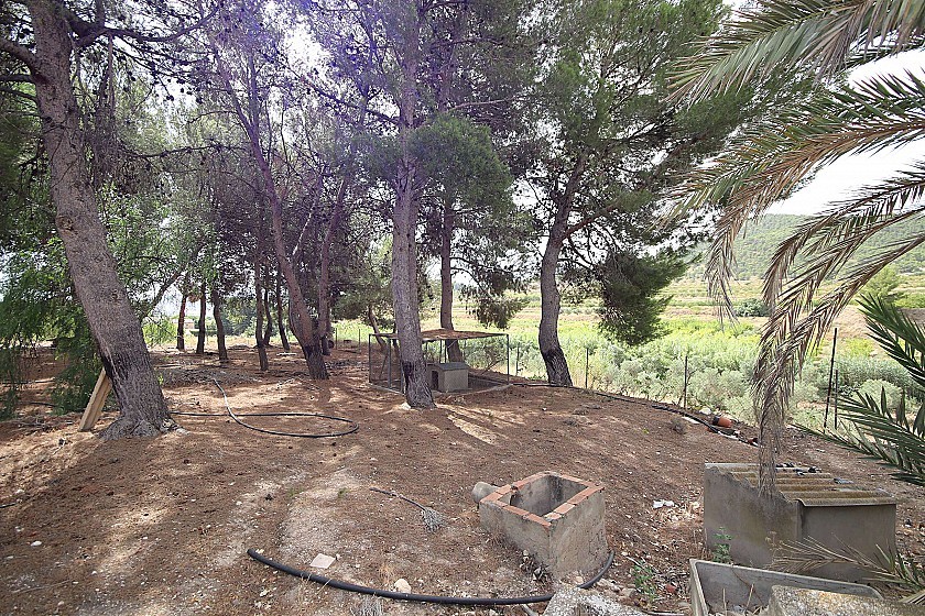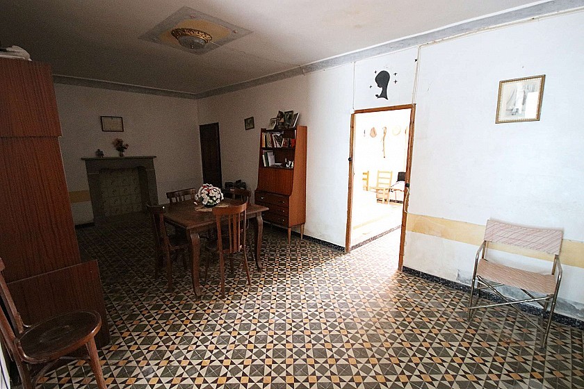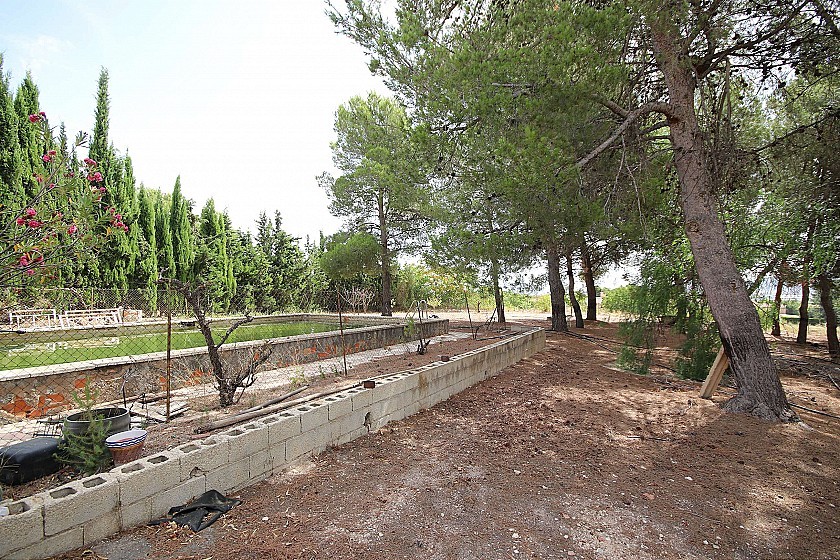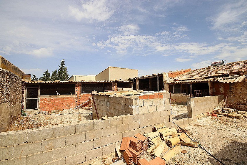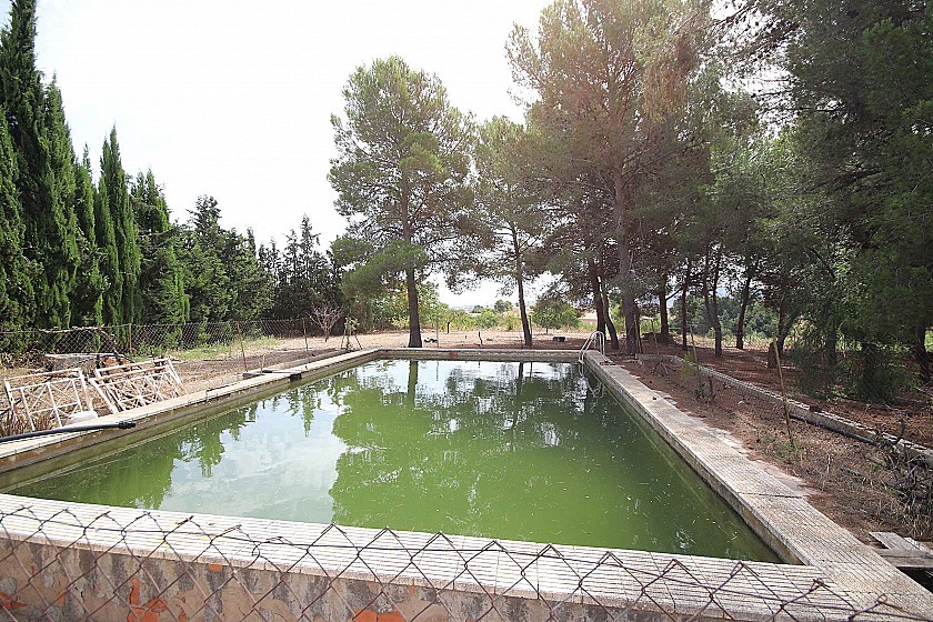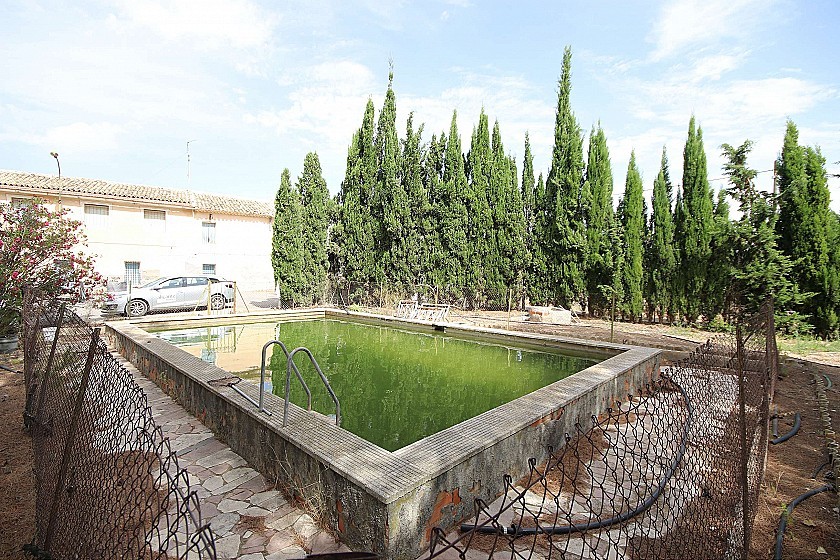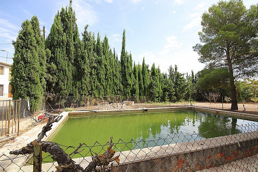 Country House in a nice location with great views. It on two floors and in need of renovation, ideal for a large family home or a business B&B. It currently has 3 bedrooms, 1 bathroom, two lounges, a dining room, two front entrances and a back entrance through the kitchen from the courtyard at the back. Upstairs could make another 3-4 bedrooms. At the front is also a large pool and shaded areas with pine trees. There is also a garage and the plot size is 2000m² fully fenced. The house size is 220m². Mains agricultural water and mains electricity. Tarmac road access. Located in a nice residential neighbourhood 10 minutes from both Monovar and Pinoso.