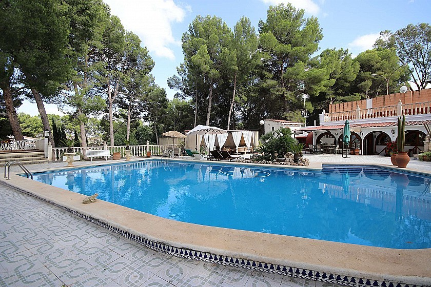 Large Detached Villa in Monovar, very close to town. It has three houses on the plot, with a lovely swimming pool and chill out area, with an outside BBQ, bar and dining room, as well as a gym and bodega. The main house has 5 bedooms and 2 bathrooms, with a lounge-dining room, kitchen, fireplace, air conditioning and a large garage. The second house in need of reform has 3 bedrooms and 3 bathrooms, only the covered terrace has been used, as a party and dining room. At the back is also a small studio house, where the owner currently lives while renting out the larger house. The studio has a kitchen, lounge and bathroom. Walking distance to town, in a great and secure area, at the end of a cul de sac. The plot size is 7400m².