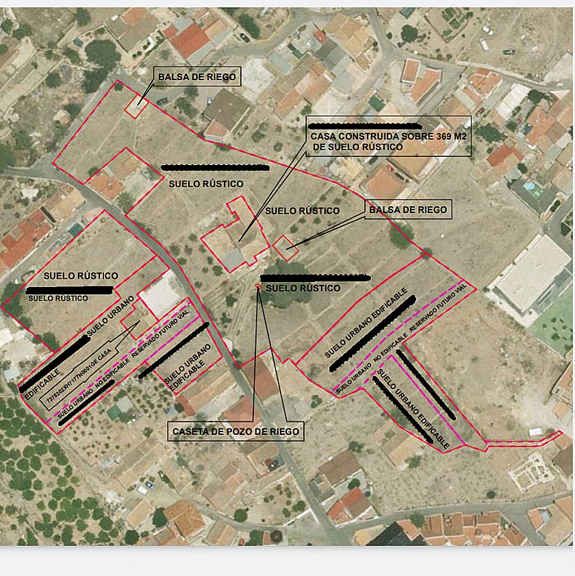 - 7,451 m2 of rustic land, which borders the urban area of the district and has tarmac and sewage, drinking water, electricity, and telephone services.