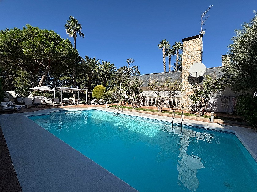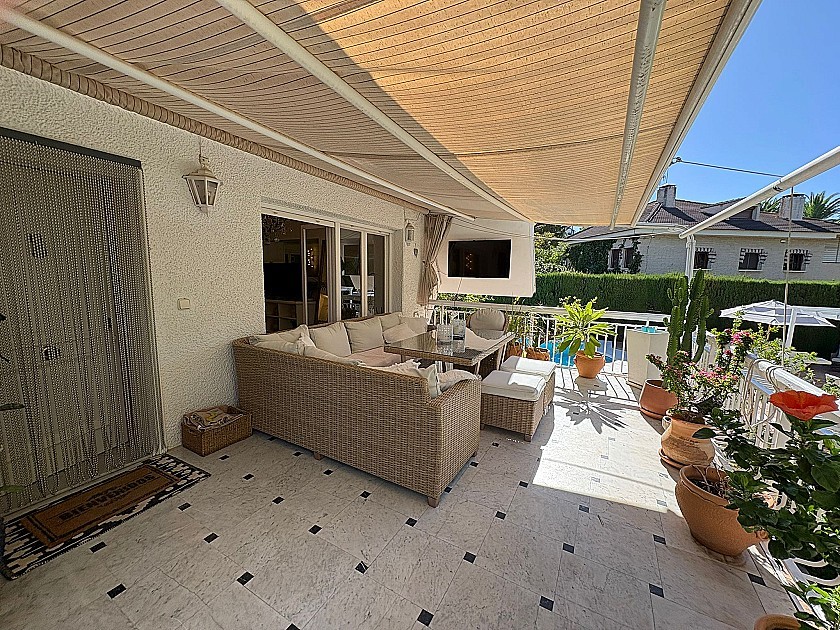 This 319 sqm villa, located in the exclusive gated community of Loma Bada in Petrer-Elda, it offers a luxurious and serene lifestyle just 20-25 minutes from Alicante’s stunning beaches city and airport. The property features four spacious bedrooms and three modern bathrooms, perfect for families or hosting guests. The villa's main living areas are bright and open, with large windows that allow natural light to flow throughout. The current owners have modernised the villa with a new stunning fitted kitchen and utility room, on the main floor you have 3 double bedrooms a master with ensuite and a family bathroom, stairs lead down to a second living room with new kitchen double bedroom and bathroom with access directly outside making this house perfect for extended family or perfect for guests.