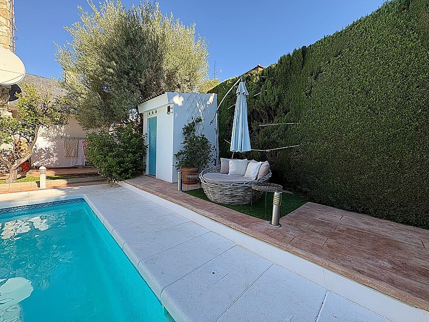 Outside, you'll find a beautiful 10m swimming pool surrounded by a well-maintained garden, ideal for relaxing or entertaining. There is also a carport for convenient parking. For those who love outdoor living, the villa includes a barbecue area and a summer kitchen, designed for alfresco dining and socializing in the warm Mediterranean climate.