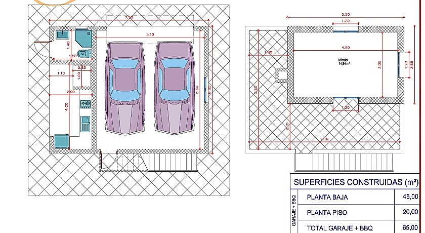 Behind the garage is the stairway to the office or extra bedroom, here there is plenty of space for a double bed or a large office with good internet connections or studio with great views from the terrace.