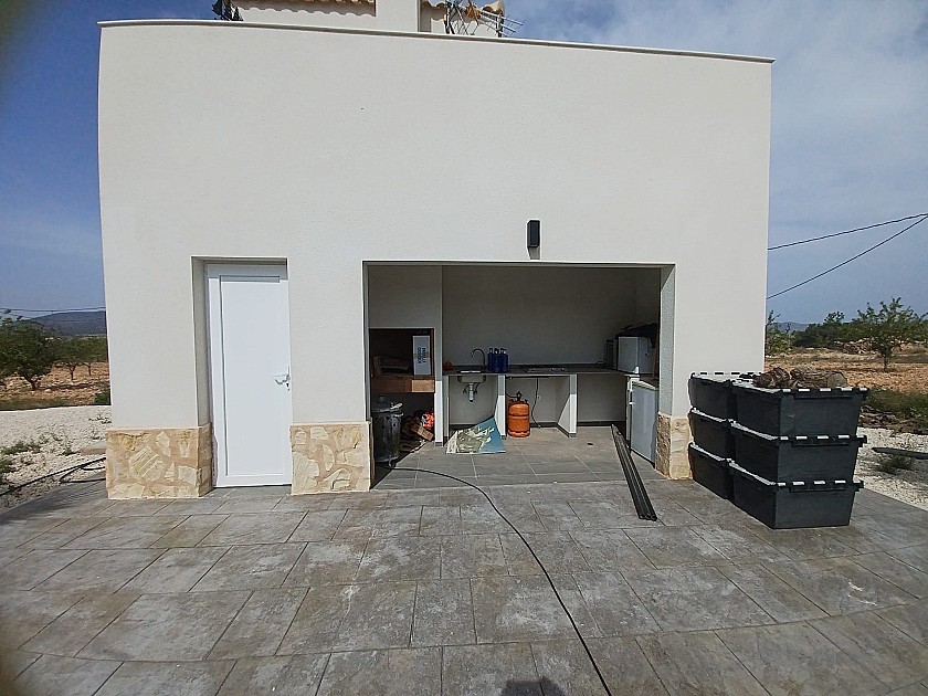 To the other end of the pool and terrace is a BBQ / summer kitchen, with a large open BBQ, plus sink, gas hob and fridge etc, next to this is an outside toilet and sink.
