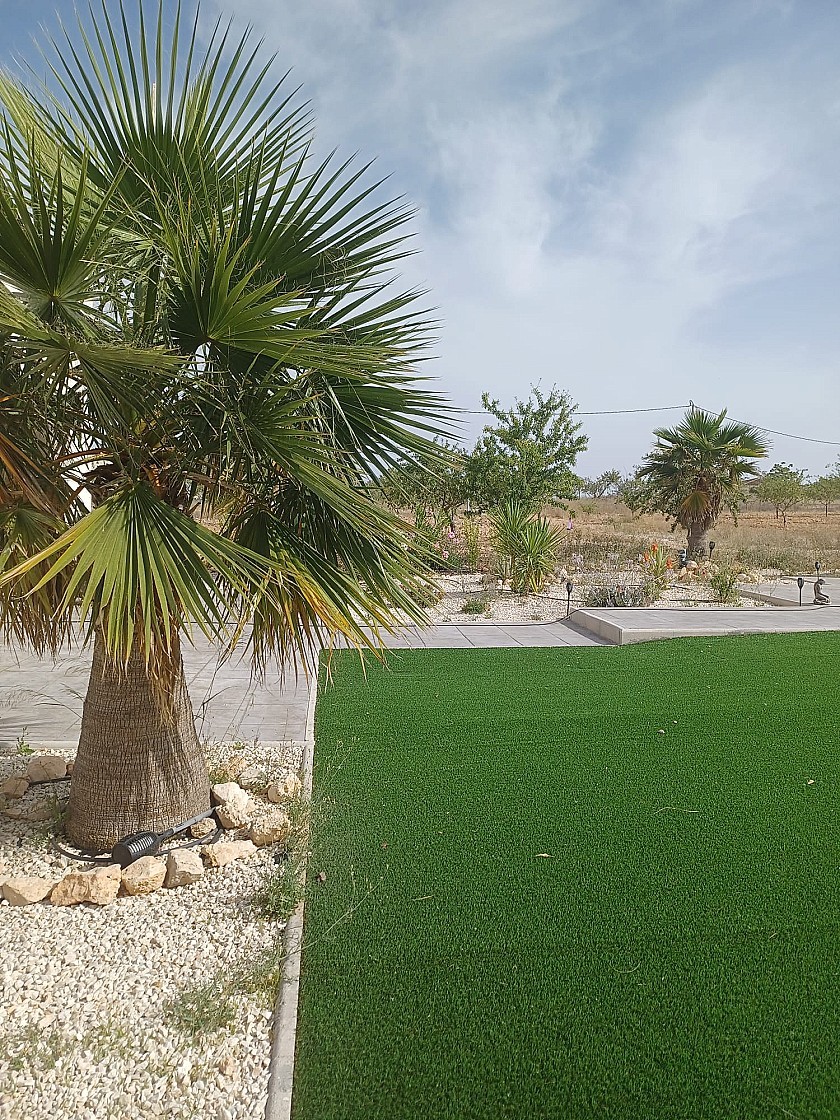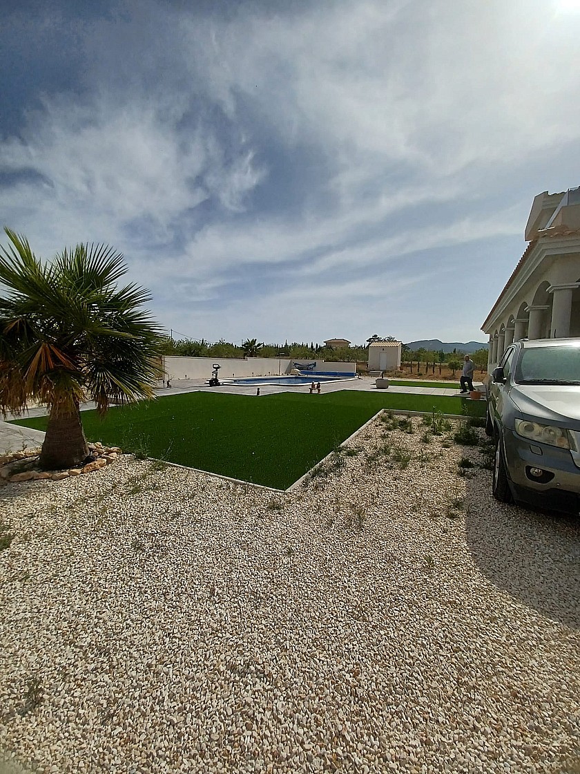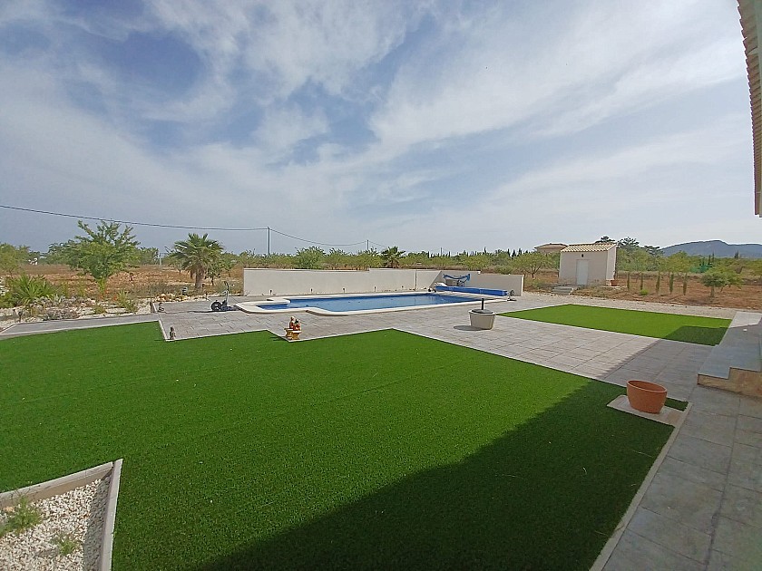 The villa is just 5 minutes’ drive from Pinoso and is set on a large plot of 11739m2, there are some neighbours around, so not isolated, but the house and pool area are not overlooked and very private.