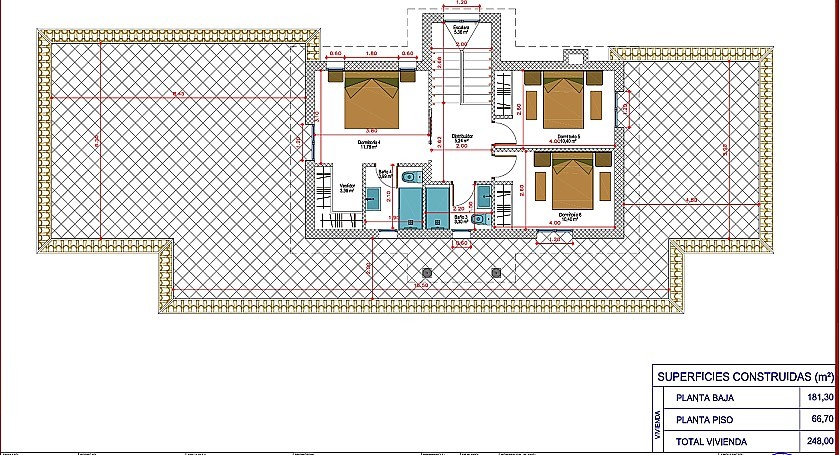 The first and second bedrooms are the same size, both doubles with built in wardrobes, plus doors that open onto the large wrap around roof terrace, with great views of the whole area around and the hills and countryside.