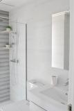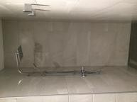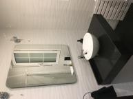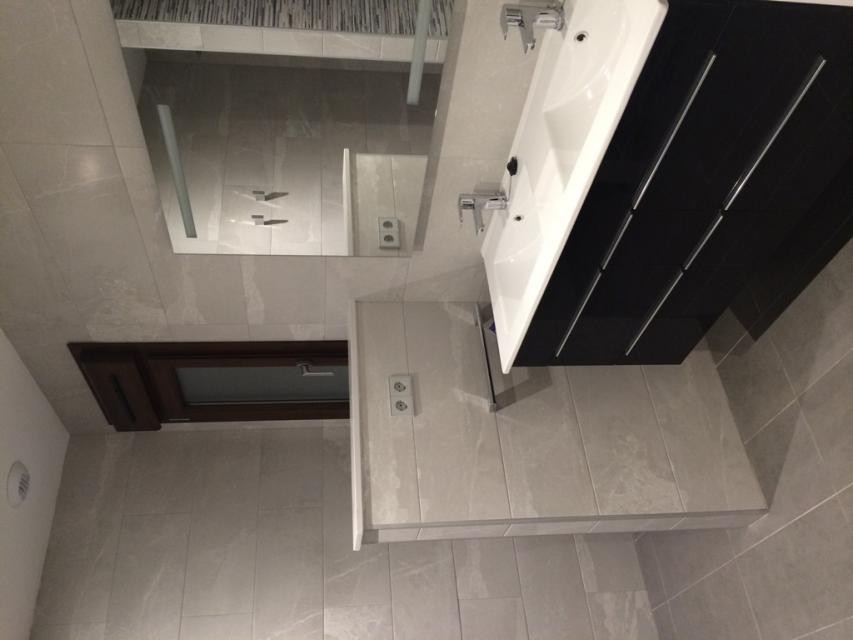 Bathrooms include a shower column, shower tray or bath, sink units (various colours to choose from) with sinks, taps and mirrors, plus a big selection of wall tiles., and a wide selection of ceramic floor tiles, with different colours, wood effect, etc.