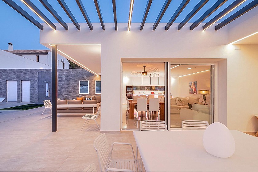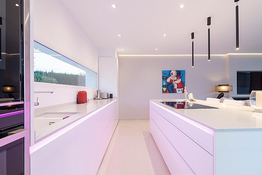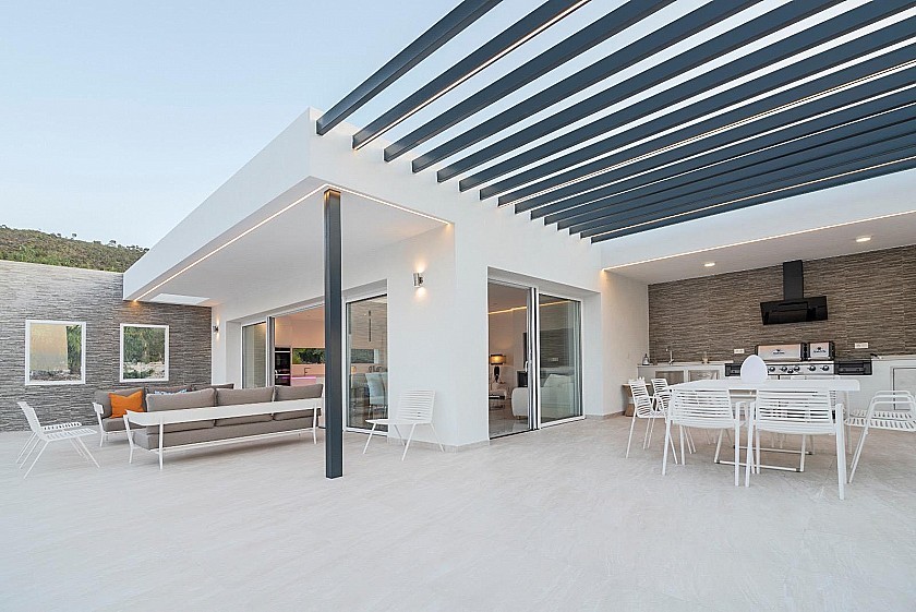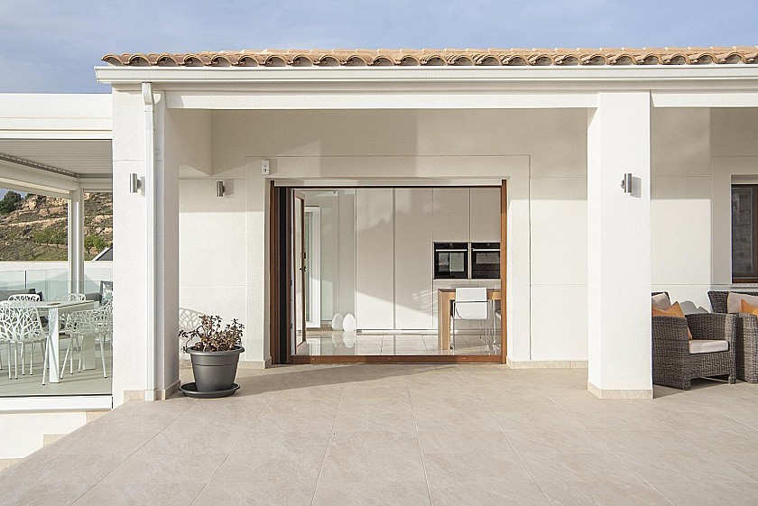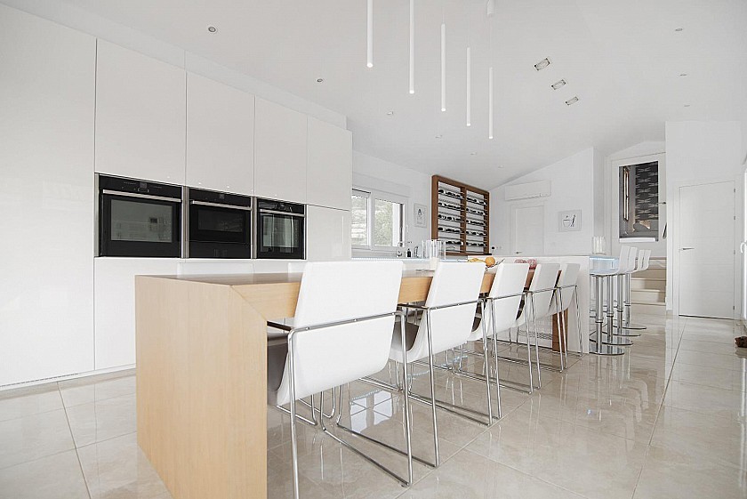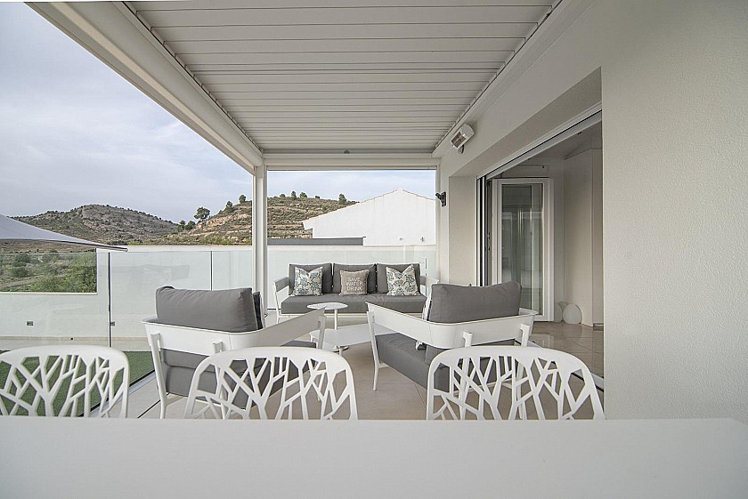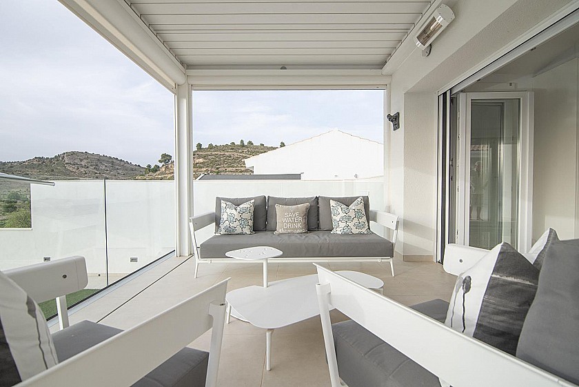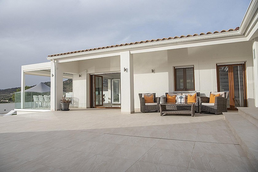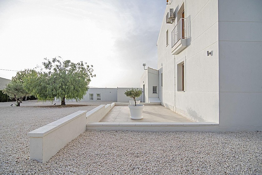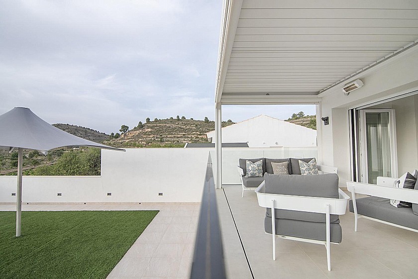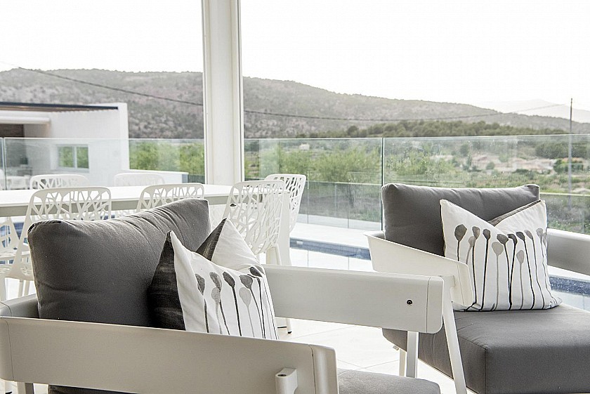 This magnificent villa is located in a beautiful area just outside the sought after town of Pinoso. It is situated in an elevated position, with incredible views of the Encebras valley. The property has been built and finished to a superior standard and offers luxury living. Electric entry gates open to the garden. The villa has a state of the art kitchen and dining room The high quality built in appliances include double Neff ovens and microwave The large island includes a top of the range induction hob complete with integral flush extractor fan that rises from the island at the touch of a button. An abundance of storage space with built in cupboards and drawers covers one side of the kitchen and includes a Miele dishwasher. Two full height integral Liebherr refrigerators complete the built in features of this beautiful kitchen. At one end of the kitchen there is large pantry and a smaller full height walk in cupboard . At the opposite end, Bi-fold glass doors open on to a purpose built covered terrace, perfect for al fresco dining. The terrace is covered with an electric metal roof that can be opened via the touch of a button. When additional shade is required, all four sides have electric blinds that can be controlled independently through a remote control that also controls light and heating on the terrace. The views from the kitchen are wonderful and the sunsets indescribable. All of the windows in the kitchen, including the two sets of Bi-Fold doors, have electric shutters. The main sitting room is large, light and airy, with double doors leading out to the central courtyard giving views over the Encebras valley. There is a warm and cozy second sitting room/snug, perfect for the winter evenings. Leading off the main sitting room there is the 5th double bedroom It benefits from a fitted wardrobe and lovely views to the east. Through a set of double doors at the other side of the sitting room is the 4th double bedroom again with fitted wardrobes and a large, en suite, beautifully fitted, shower room. A stunning wide tiled staircase, complete with chrome and glass banisters, leads up to the first floor where there is a magnificent master bedroom with walk in wardrobe and bathroom that includes, double sinks, bidet, toilet, bath and a large glass sided walk in shower. A total of 3 double bedrooms, all with Juliet balconies, walk in wardrobes and their own en suite facilities are located on this floor. All bedrooms have fantastic views over the surrounding countryside. A door off the glass panelled large landing leads out to a full width terrace with views to the natural park. Double electric awnings can be deployed whenever extra shade is required. On the same level as the kitchen, located across the Hacienda styled courtyard, the utility room includes cupboards and concealed laundry facilities including washing machine and a tumble dryer. The room has two sinks and a 5th toilet. The worktop and extensive storage allow for all your laundry needs. With multiple seating areas to suit all types of weather, this remarkable property just keeps on giving. Steps, complete with remote controlled integral lighting, take you down to pool area. This includes the large 16 metre x 6 metre swimming pool with fully integrated electric pool cover, and sunbathing terraces all around including one with high quality artificial grass and a fixed, specially commissioned, wind resistant parasol. From inside the pool you can still enjoy the magnificent views across the Encebras valley through the full pool width glass panels, all lit at night by uplights. At the opposite end of the pool is the all year round, pool room. This wonderfully contemporary room includes a fully fitted kitchen including an island and appliances to the same high spec as those in the main house. A full size living room and dining area gives plenty of space for those dinner parties whatever the time of year. As if that wasn’t enough, outside the pool room is a huge covered barbecue area with a top of the range fully fitted American gas barbecue. The work area includes a full sink, storage areas behind stainless steel doors and an outside refrigerator for those all important cold wines and beers. A large awning can be deployed to give extra protection from the sun at the height of summer. Views of the valley are maintained through the double windows and of course, down the length of the pool over the surrounding hills and mountains. The pool room benefits from the installation of the latest technology including Under Floor heating, full Wi-Fi, Satellite TV, Air Conditioning, full width flush wall mounted feature fire, remote controlled led lights, concealed ambient lighting etc. All lights are controllable by dimmer switches installed throughout the pool room and barbecue area. The pool, pool room and barbecue area all share the luxury of a stunning toilet and outside shower. Hot and cold water is derived from a designated boiler that is housed in the pool machine room next door to the toilet. All of these features make this room and this house a truly special place, at any time of the year. To the side of the house there is a 3 car garage with a remote control electric door and a side door for convenience. This amazing property just keeps giving, it truly does have it all. If you are looking for the perfect home this one is a must.