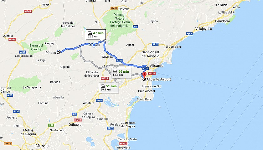 Pinoso (El Pinós) is one of Spain’s richest towns, with a marble mine, thriving footwear industry, salt deposits and a booming wine and agriculture industry. The town is located in the mountainous countryside of the Alicante wine region, 45-50 minutes drive to Alicante airport, city and beaches and close to the border of Murcia.