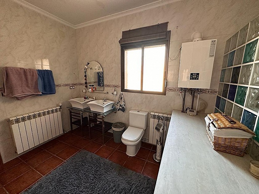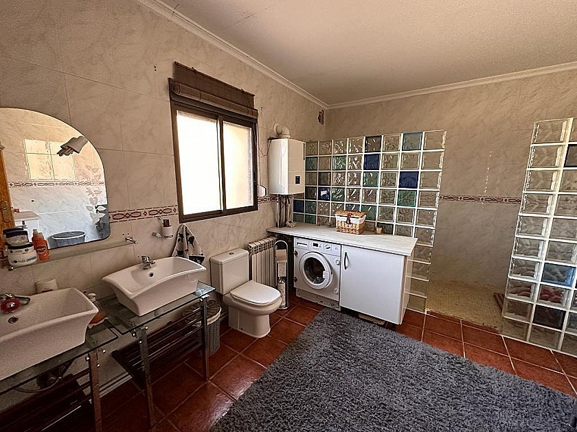 Wood beamed Finca with 3-4 Bedroom. New Rustic integrated fitted Kitchen. Large bathroom with His and Hers Sinks and Showers. Large garage (opportunity for Conversion to separately self-contained guest house). Central Heating and Hot water Gas Combi Boiler (2 Bottle feed). Log Burner Pizza oven. Walled Courtyard. Mains drinking Water