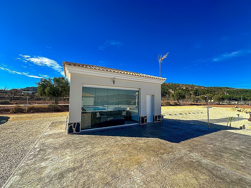 All our houses include 2m stamped concrete terrace around the pool (colour and pattern to choose), 1m around the house, gated entrance, 3000m2 fencing, pre-installed ducted aircon, standard kitchen, security door, german tilt and turn windows (or sliding if prefered), built-in fireplace and chimney, pre-installation for tv and internet, gravel driveway plus a few meters around the house, septic tank.