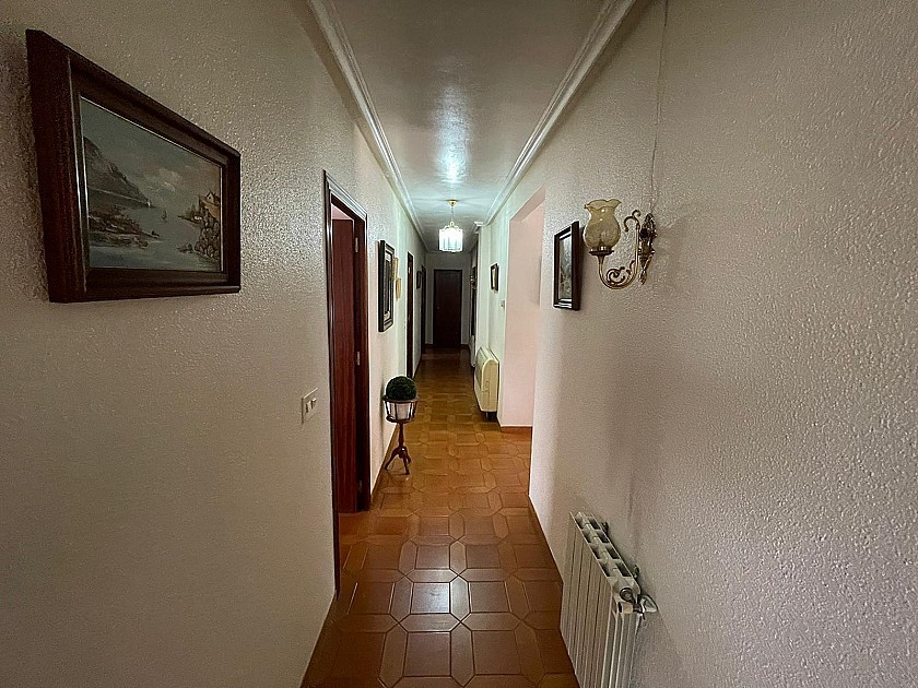 A long corridor leads to the kitchen, 4 double bedrooms, a pantry, a large bathroom with a bathtub.