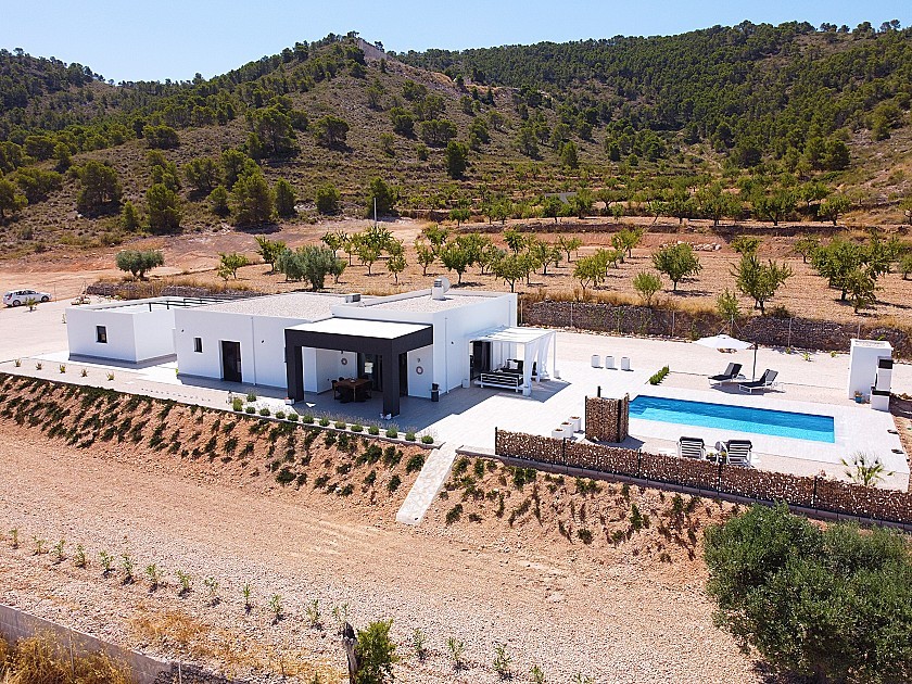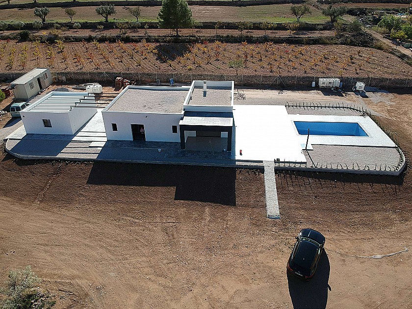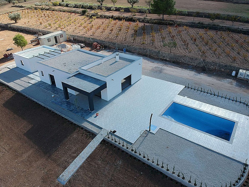 New design villa with various finishes inside and out. Show house ready to view 2 plots left. (10 now sold) ..Walking distance to the village with restaurant and bar 10 mins to Pinoso, 5 mins to Alguena.
