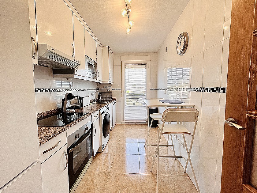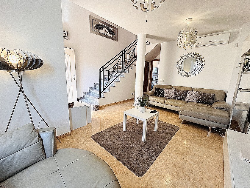 Al entrar, le da la bienvenida una amplia sala de estar que se conecta a la perfección con una cocina totalmente equipada, perfecta tanto para el día a día como para recibir invitados. La casa se vende completamente amueblada, lo que permite una transición fluida e inmediata.