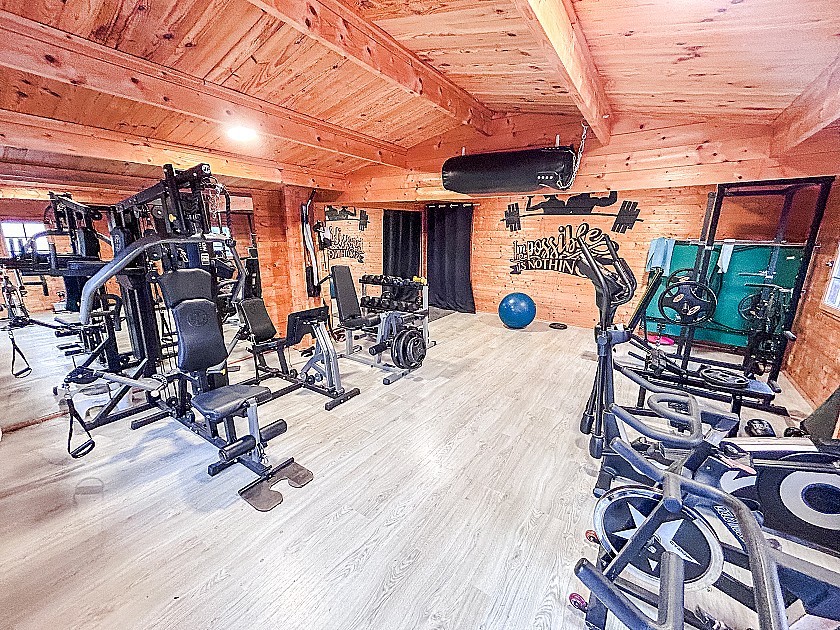 El exterior de la finca está concebido para disfrutar al máximo del clima mediterráneo. La propiedad dispone de una piscina privada acompañada de una cocina de verano con barbacoa, perfecta para reuniones familiares y sociales. A ello se suma un gimnasio completamente equipado, situado al aire libre y con todo el material incluido en la venta, así como una cancha de fútbol con césped natural.