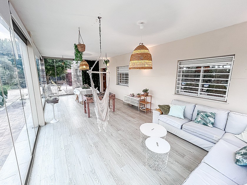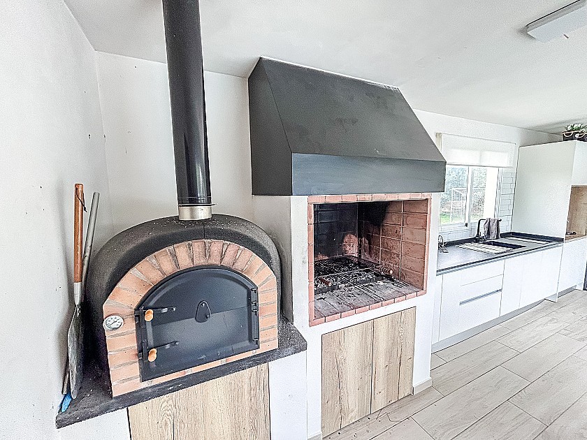 La casa se distribuye en espacios amplios y bien diseñados, con tres dormitorios —incluyendo una suite con vestidor— y tres baños, uno de ellos situado en el exterior, junto al gimnasio. El salón principal, acogedor y luminoso, está equipado con chimenea, aire acondicionado por conductos en toda la vivienda y calefacción central por gas, garantizando un ambiente agradable durante todo el año.