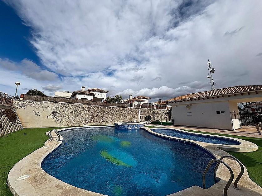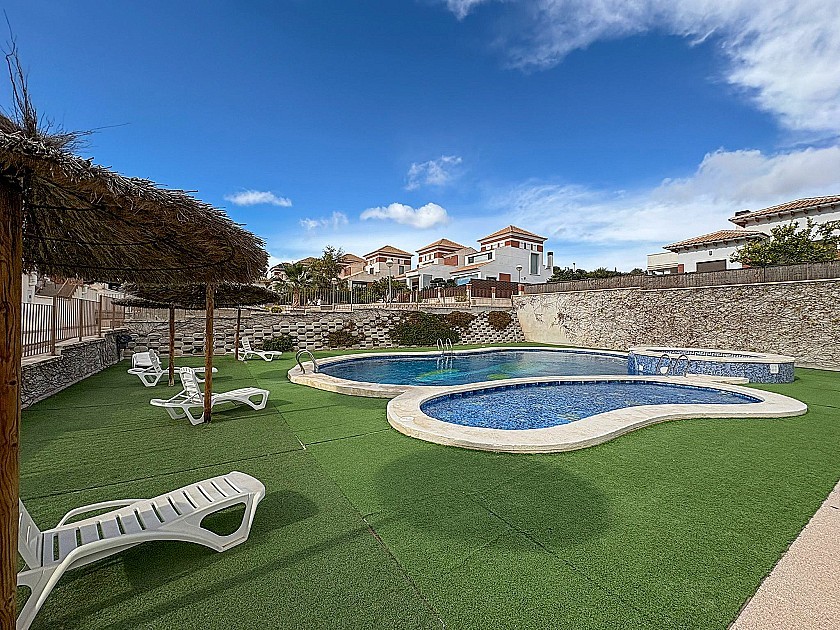 - Una piscina comunitaria equipada con duchas exteriores y baños.