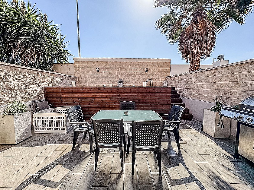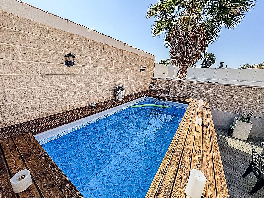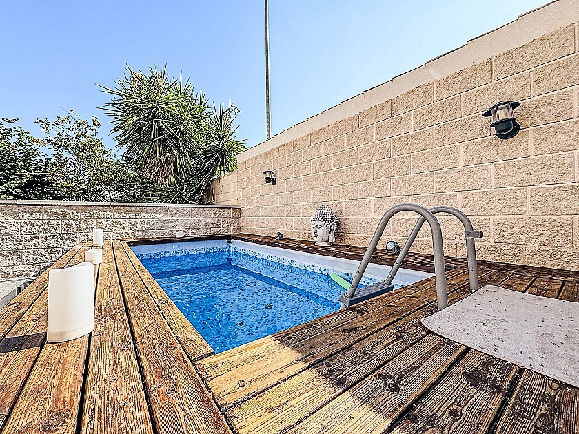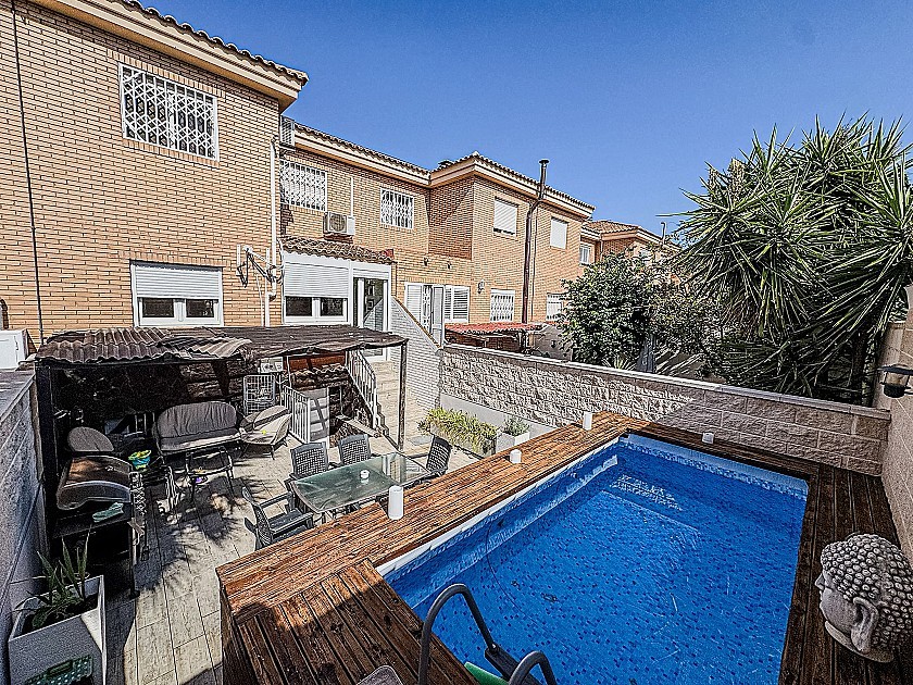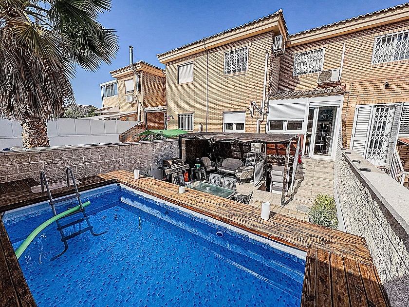 En el exterior, se puede disfrutar de un jardín privado con piscina, ideal para los cálidos días del verano mediterráneo. Además, dispone de garaje, con espacio de almacenamiento adicional.