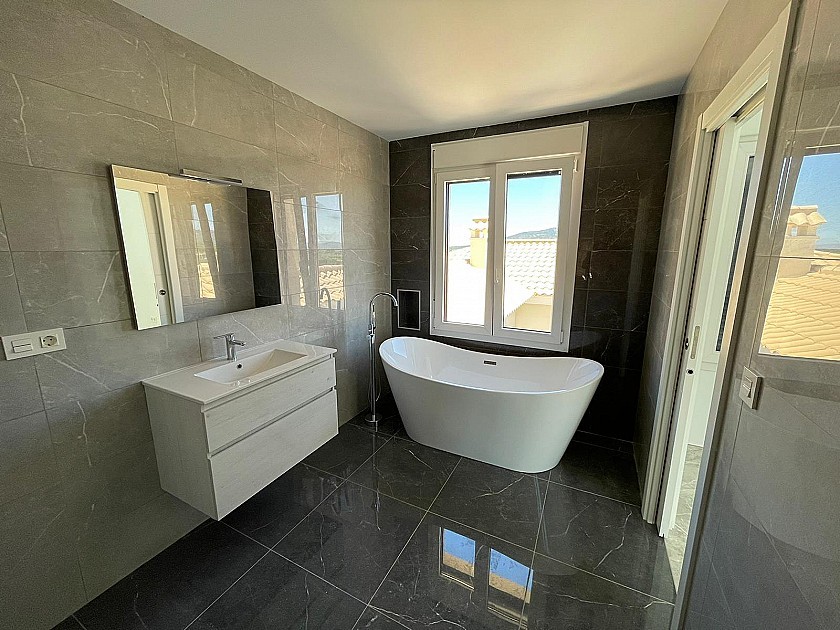 Los baños incluyen columna de ducha, plato de ducha o bañera, lavabos (en varios colores a elegir) con lavabos, grifería y espejos, además de una amplia selección de azulejos de pared y suelos cerámicos de diferentes colores, efecto madera, etc.