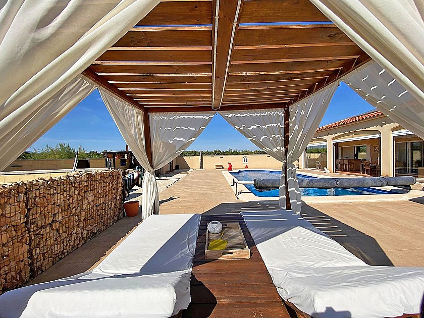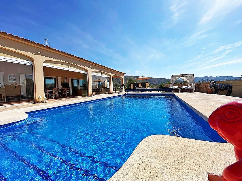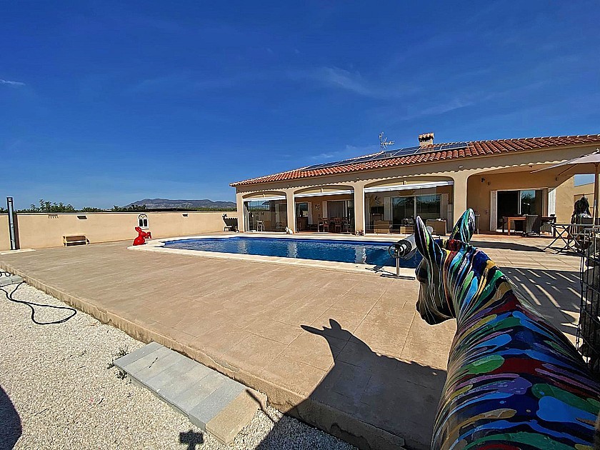 Los tres dormitorios son todos de buen tamaño, el dormitorio principal tiene un elegante baño en suite, también hay un baño familiar adicional. La villa fue construida en 2013 y tiene un estilo moderno y elegante. Al salir, se encuentra con una gran piscina de 12 m x 5 m, con una gran terraza con mucho espacio para tumbonas, perfecta para los largos y calurosos días de verano.