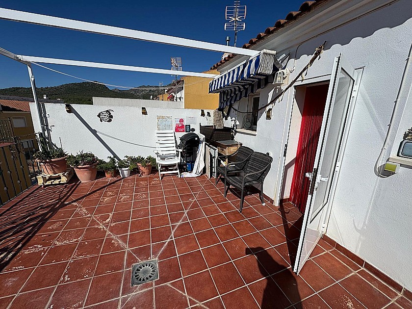 Hay una gran terraza en la azotea con toldo plegable, perfecta para disfrutar del sol español en privacidad.