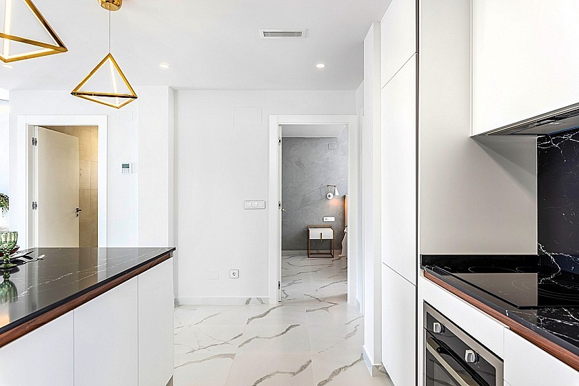 Hay cientos de propiedades en venta en la Costa Blanca Sur, pero esta sin duda llamará su atención. Se trata de una casa de diseño moderno y abierto, completamente a estrenar, con una amplia distribución que consta de 2 dormitorios, 2 baños, cocina americana con isla y un amplio y luminoso salón-comedor.