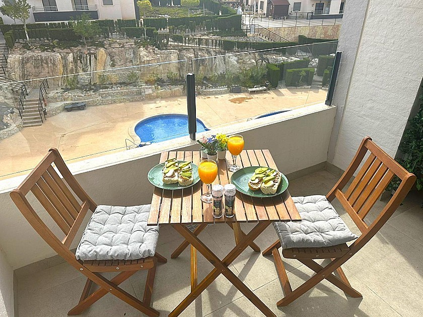 Todas las habitaciones están impecablemente presentadas con hermosos acabados. La hermosa sala de estar da acceso al encantador balcón, donde podrá sentarse a desayunar y disfrutar de las maravillosas vistas a la impresionante piscina comunitaria. Después, podrá dar un corto paseo hasta las tiendas, bares y restaurantes, que están prácticamente a la vuelta de la esquina. ¿Qué más se puede pedir?