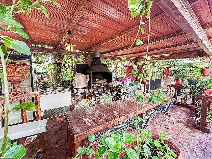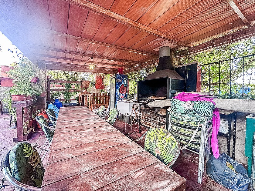 El exterior ofrece múltiples atractivos. Dispone de un garaje privado con espacio para 2 o 3 vehículos, un acogedor porche con mesas, zona de barbacoa y luces decorativas, perfecto para reuniones familiares o con amigos. La parcela, de unos 2.000 m² vallados, proporciona privacidad y seguridad. También cuenta con un patio interior que integra una segunda barbacoa y una habitación amplia con múltiples posibilidades, ya sea como zona de ocio, trastero, gimnasio o estudio.
