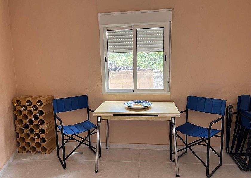 ¿La ubicación? ¡Guau! A cinco minutos del pueblo de Sax y un poco más de Elda. Está justo al lado de la carretera de Sax a Elda y es muy tranquila, pero no está aislada y tiene vecinos, como ya se mencionó. He evitado decir que está a poca distancia del pueblo porque probablemente son unos 30 minutos a pie, casi, pero en los dos o tres meses de calor, llevaría el coche con el aire acondicionado puesto.