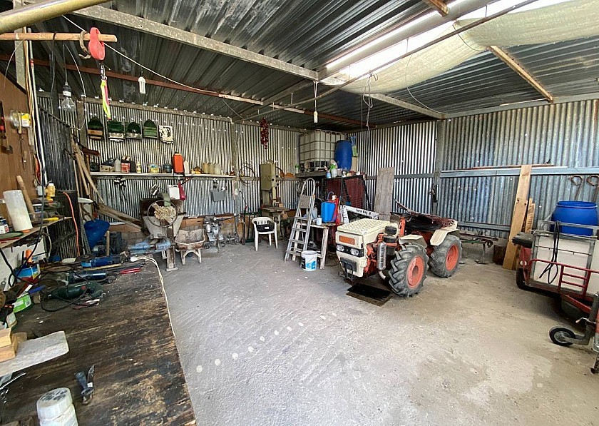En el terreno hay una estupenda cocina de verano con barbacoa y horno, hay dos cuadras y una piscina, está muy bien situada y separada para que no puedan entrar niños pequeños ni mascotas.