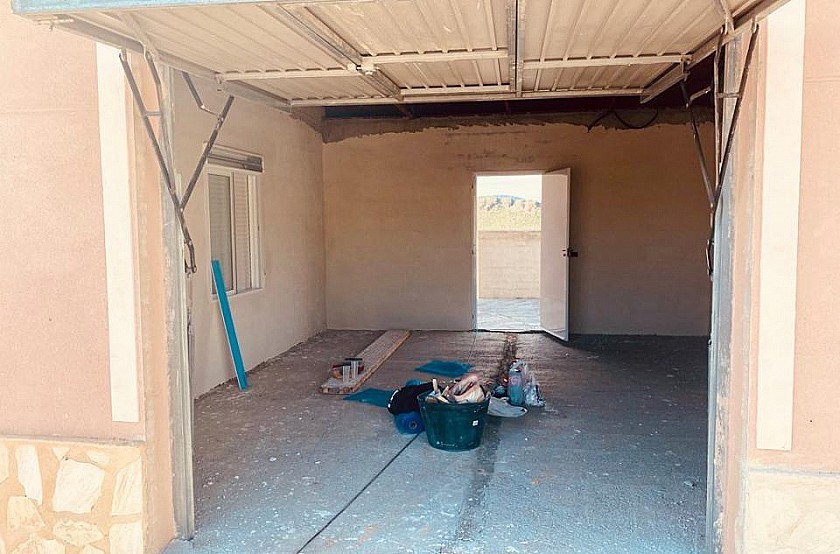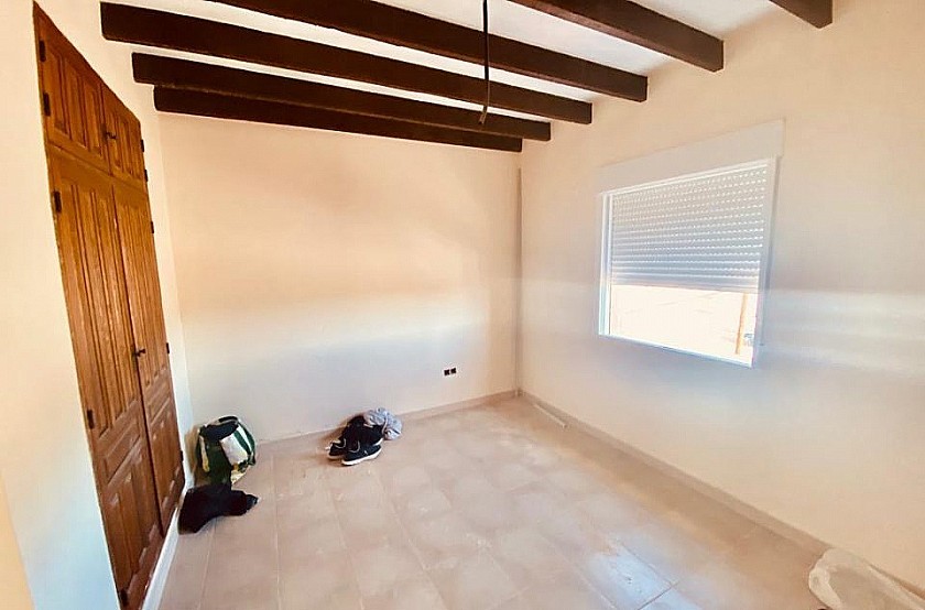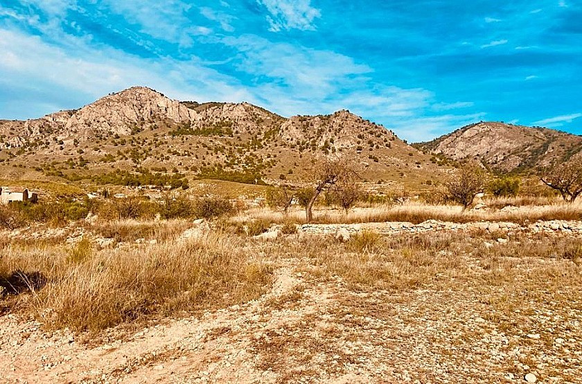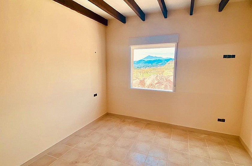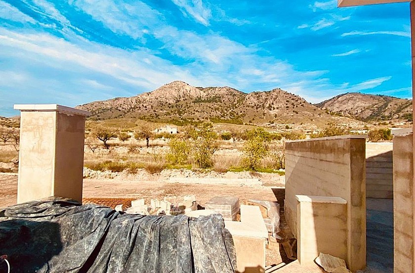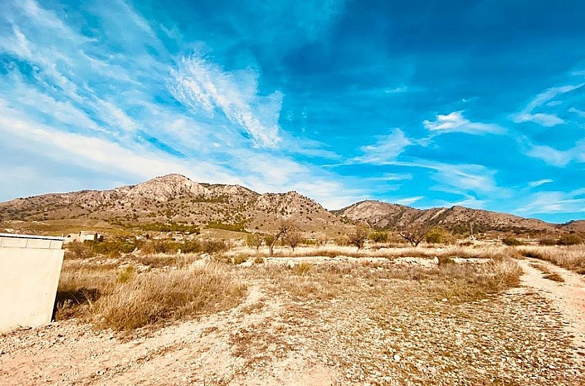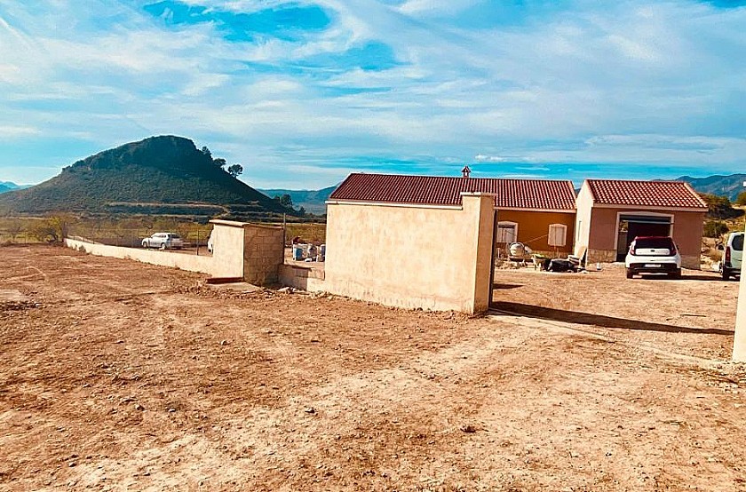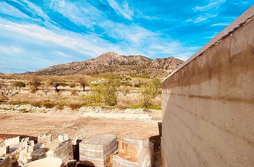 La villa de 167m² tiene un hall de entrada que conduce a la cocina con office y junto a ella un gran salón con vigas de madera y una gran chimenea abierta. Desde el salón se pasa a través de ventanales a la gran terraza donde se puede disfrutar de las extraordinarias vistas. La villa también tiene tres dormitorios y dos baños, uno de ellos en suite. Hay un gran garaje y un patio de 40m² que se podría cerrar para un dormitorio adicional si lo desea. En la parte trasera de la casa se encuentra la hermosa piscina de 8x5m que también ofrece unas vistas extraordinarias de la naturaleza circundante y del terreno de 6.000m². La villa se encuentra a 50 minutos de Alicante ya 30 minutos del centro de Murcia.