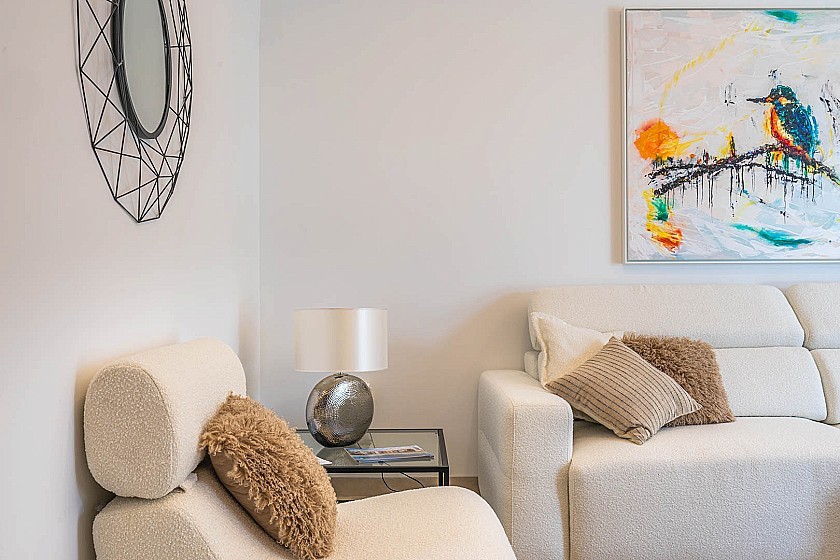 Las villas están diseñadas en una sola planta con techo elevado hasta la cocina. Cada villa cuenta con terraza envolvente/zonas de sol en la planta baja y un amplio solárium privado en la primera planta para disfrutar de horas de sol durante todo el año.