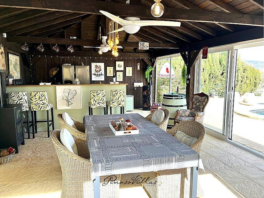 Al entrar en la propiedad, encontrará un luminoso salón-comedor con una acogedora estufa de leña, ideal para los meses más fríos del invierno.