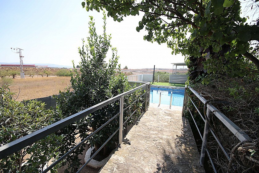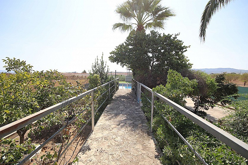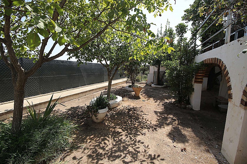 Lorsque vous entrez dans la parcelle, vous avez un magnifique jardin qui mène à la propriété, avec de nombreux arbres fruitiers, plantes et fleurs, et une piscine de bonne taille.