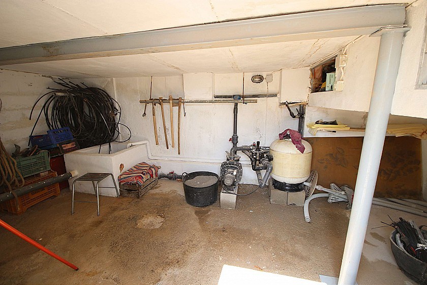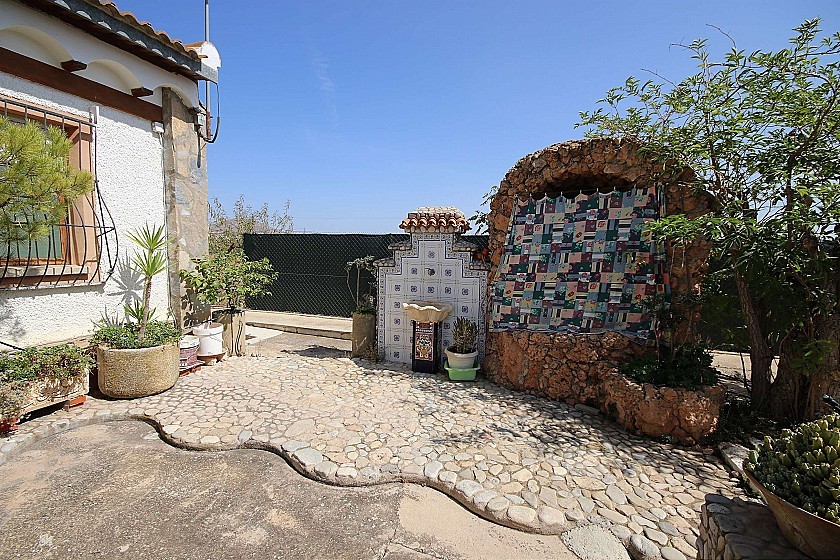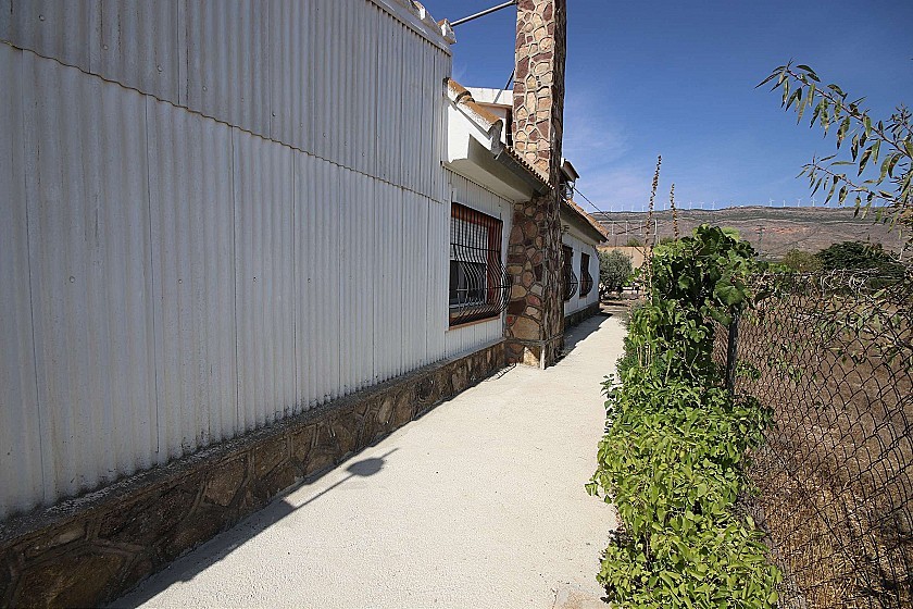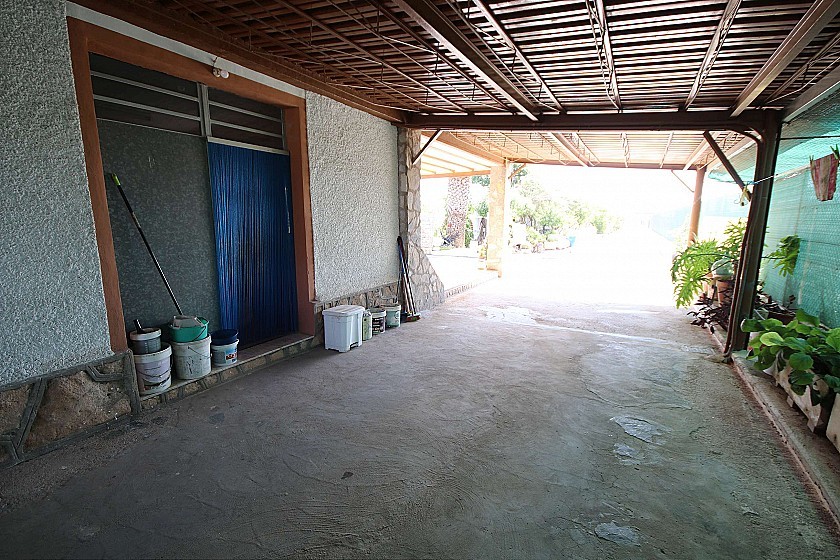 Le côté de la propriété a une autre grande zone couverte et également à l'arrière de la propriété il y a une autre terrasse couverte, où se trouve également la cuisine d'été, entièrement équipée avec four à pain, barbecue, cuisinière à gaz, réfrigérateur et évier. A côté se trouve la troisième petite salle de bain.