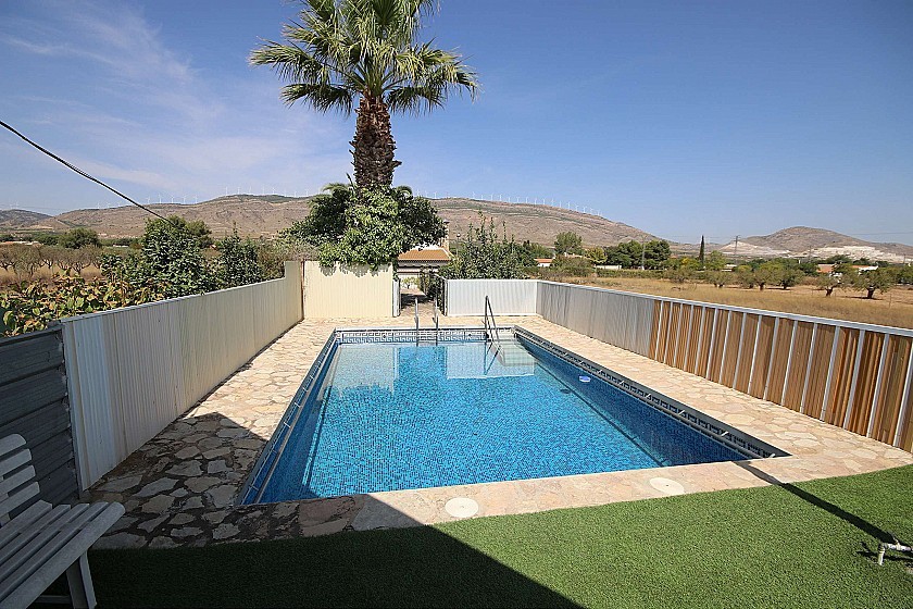 Villa individuelle à distance de marche de la ville de Caudete, avec une taille de construction de 350 m² comprenant la terrasse couverte et un terrain clôturé de 3700 m². La maison comprend 4 chambres, 2 salles de bains + un WC extérieur, un salon, une salle à manger, une cuisine et une cave à vin souterraine. À l'extérieur se trouve une piscine et des jardins bien entretenus, et à l'arrière un court de squash espagnol, un abri voiture et une aire de jeux. Il y a une nouvelle autoroute contournant Caudete qui passait près de la maison, elle aura donc un accès rapide pour se rendre à Valence/Alicante, mais sera un peu bruyante (il y a des murs anti-bruit).